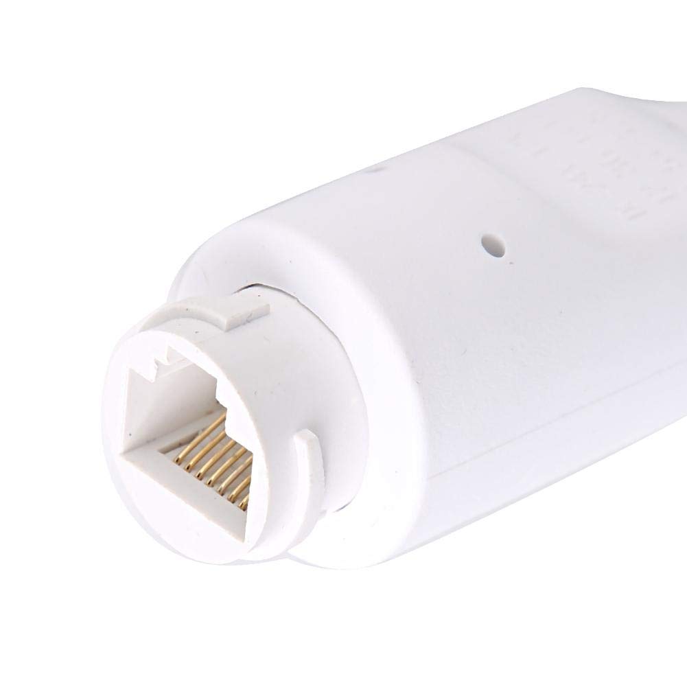 ✅ Wyposażony w 1 port RJ45 na wejściu oraz kabel Ethernet i kabel zasilania DC