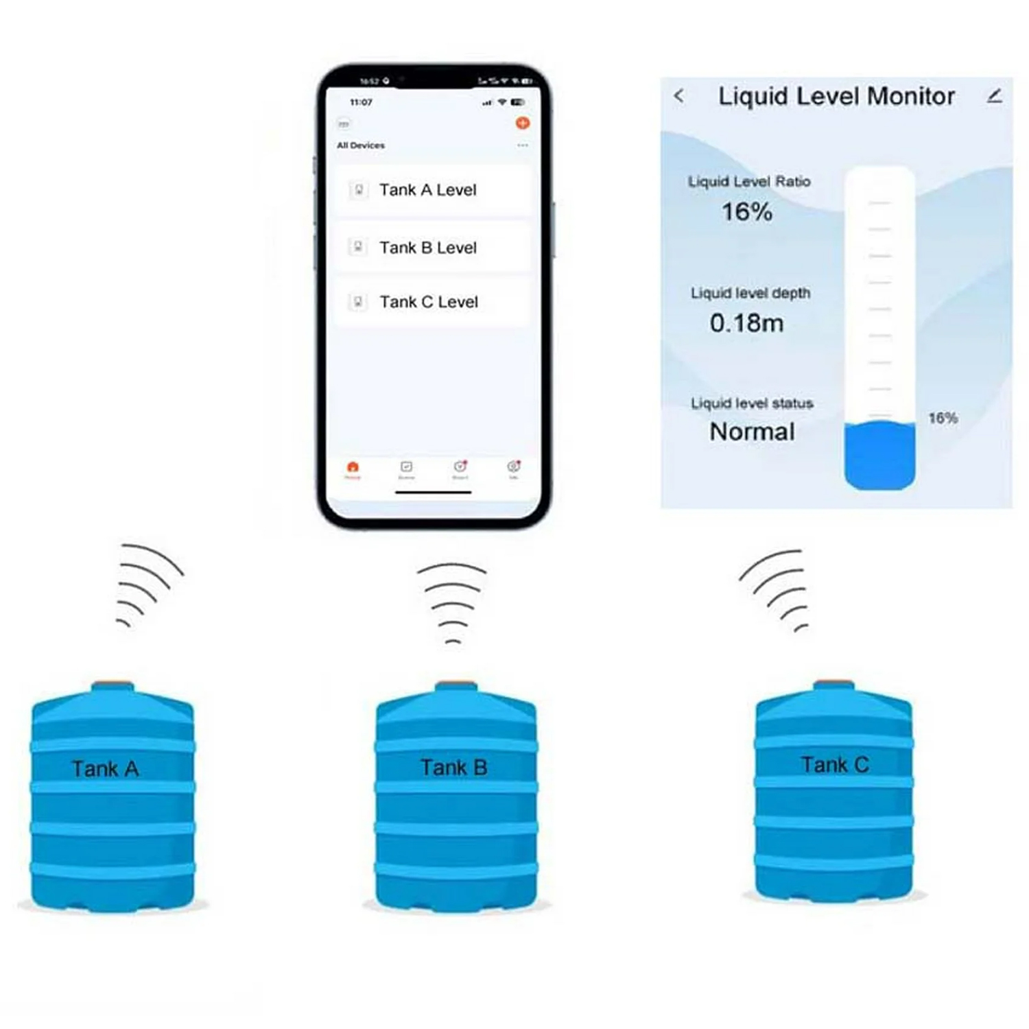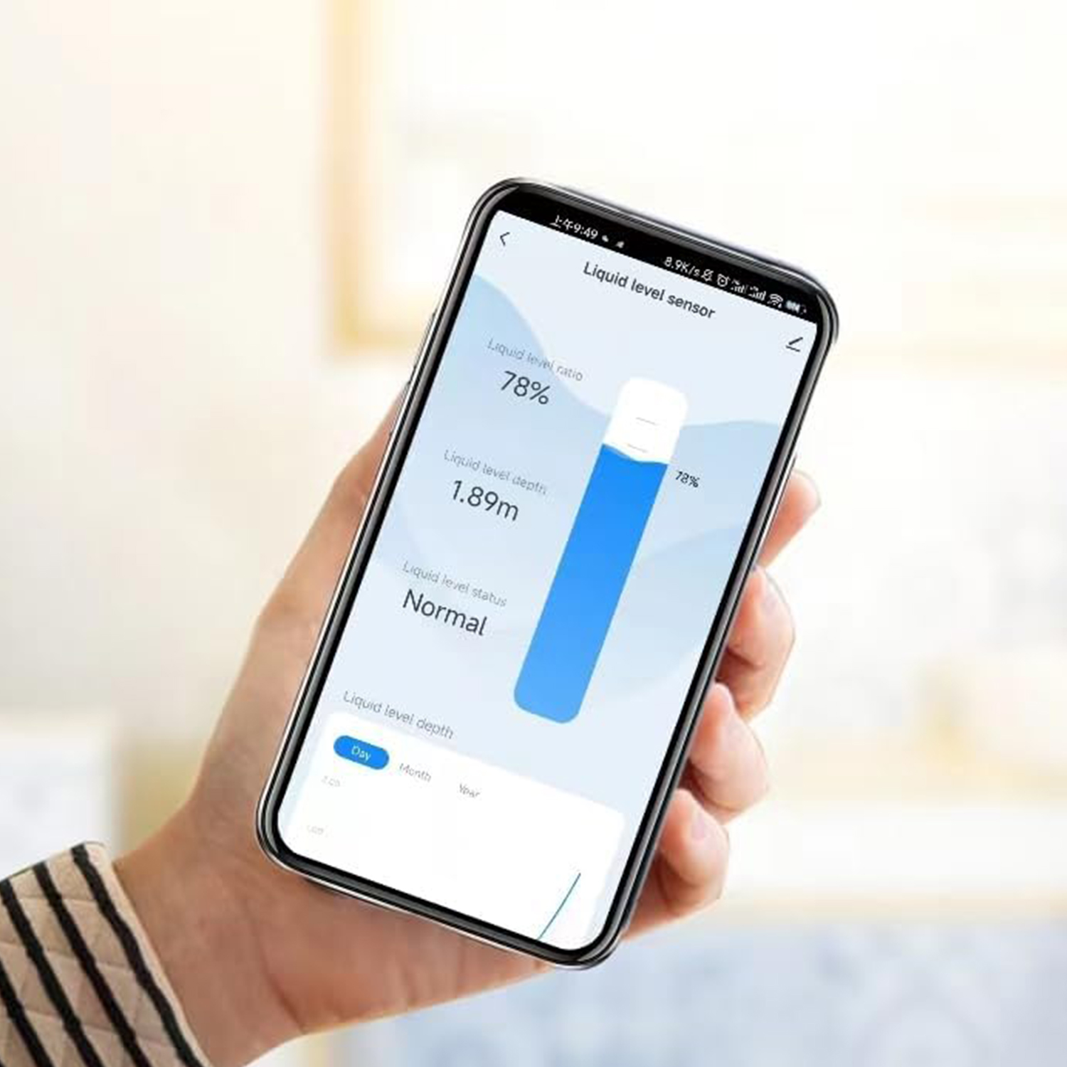 Dzięki miernikowi cieczy w łatwy sposób zmierzysz poziom cieczy w zbiorniku i odczytasz wynik na swoim smartfonie, w aplikacji TUYA Smart.