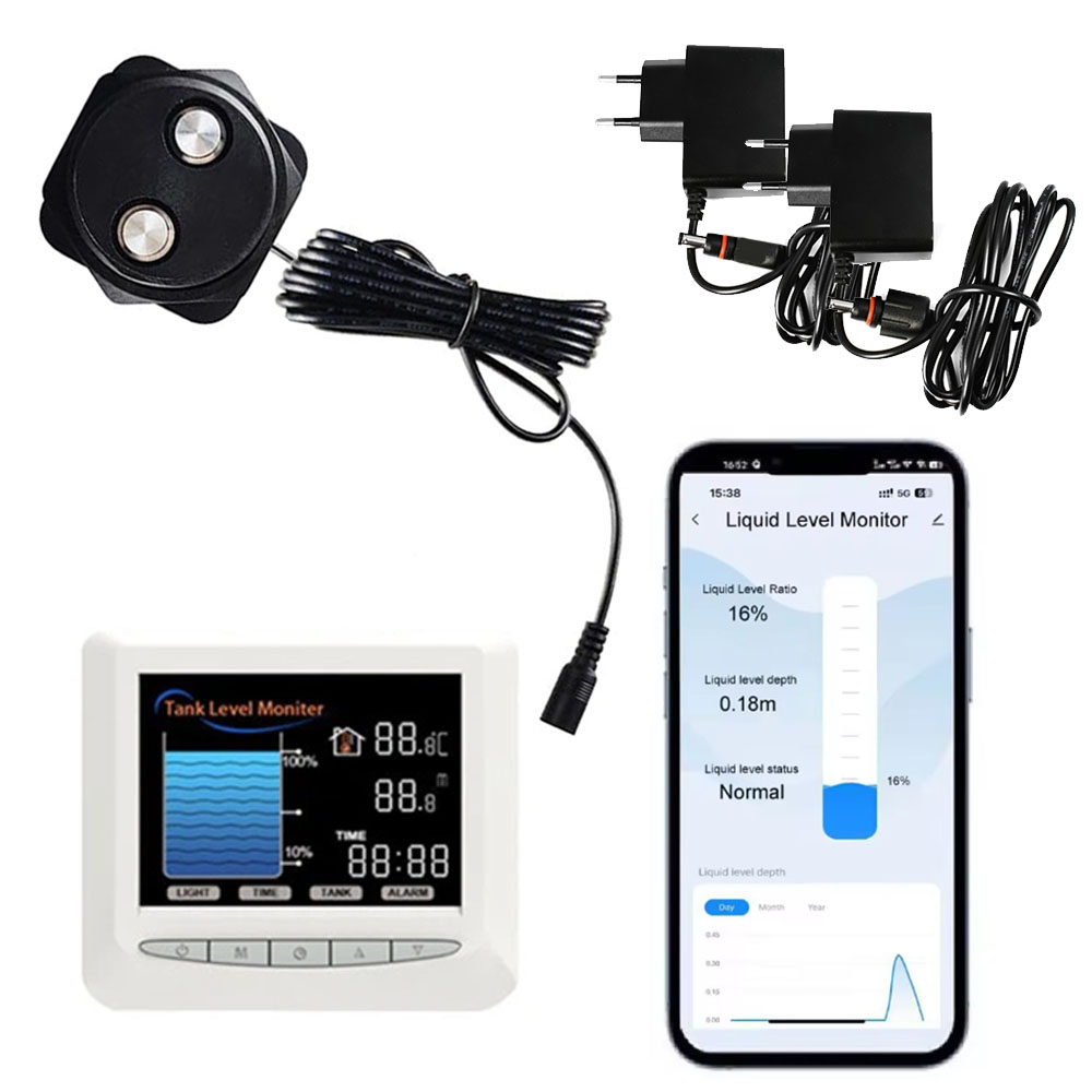 Dzięki miernikowi cieczy w łatwy sposób zmierzysz poziom cieczy w zbiorniku i odczytasz wynik na swoim smartfonie, w aplikacji TUYA Smart. Wykrywanie poziomu cieczy odbywa się z wykorzystaniem ultradźwięków, a wszelkie informacje wysyłane są bezpośrednio do Ciebie, co eliminuje potrzebę fizycznych kontroli zbiornika.
