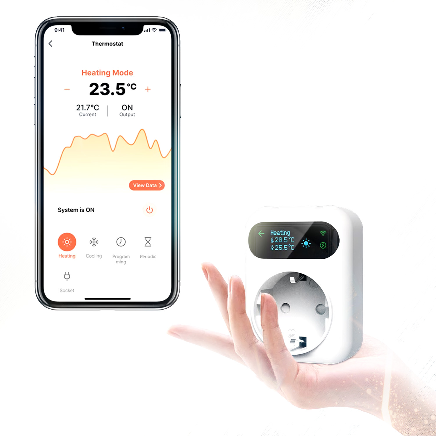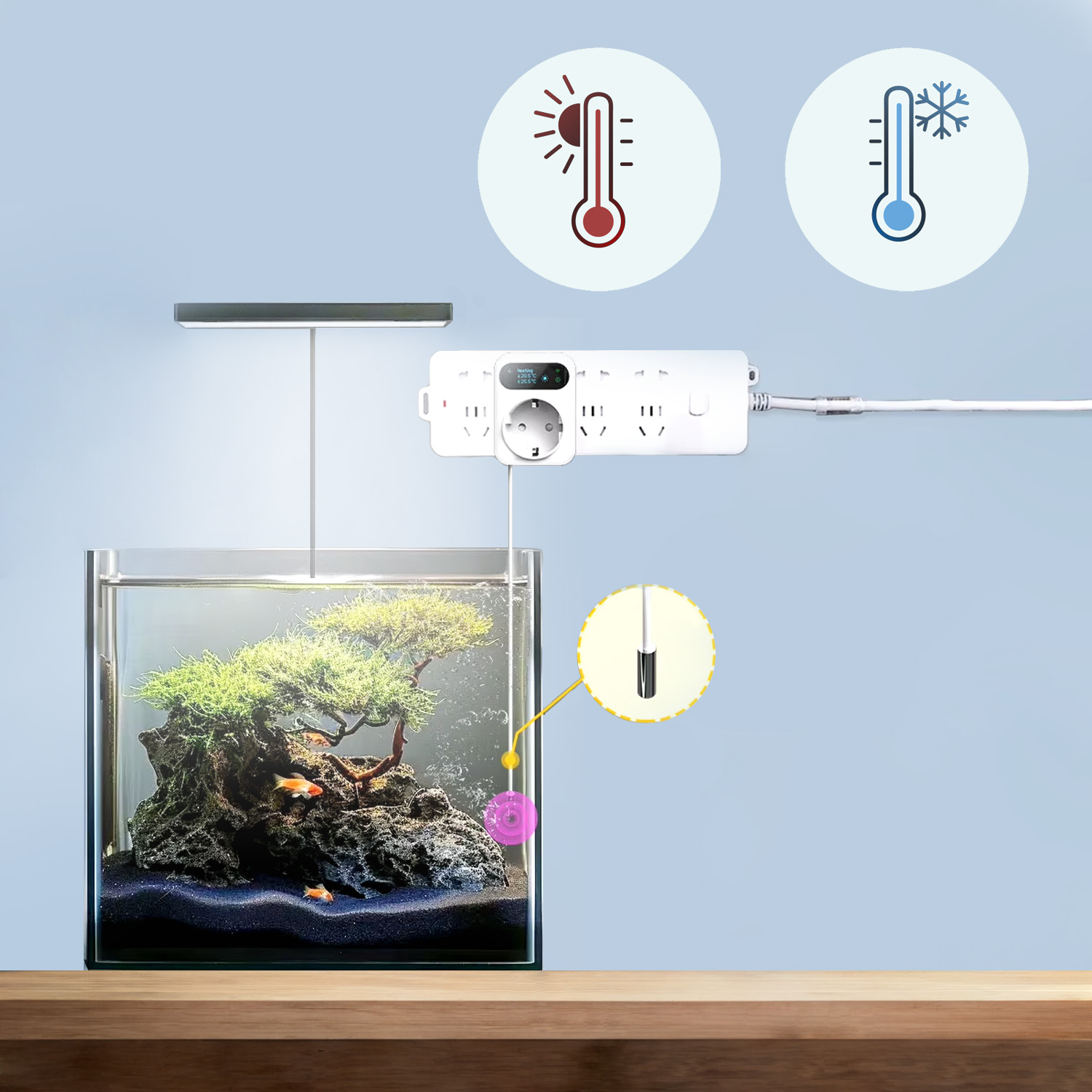 To urządzenie jest wielofunkcyjnym rozszerzeniem do standardowego gniazdka, które umożliwi dokładny pomiar temperatury dzięki dedykowanemu wejściu na sensor krótki lub długi (zawarte w zestawie), oraz precyzyjną i bezprzewodową kontrolę nad urządzeniem wpiętym do gniazdka za pomocą aplikacji TUYA Smart.