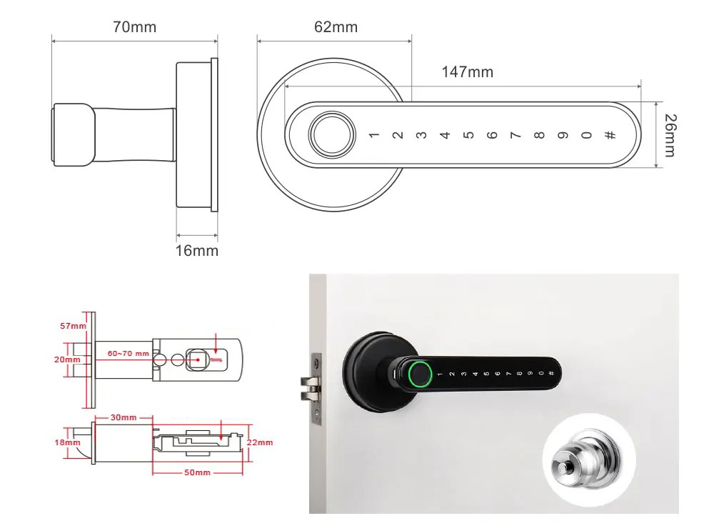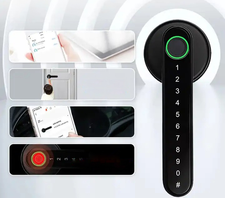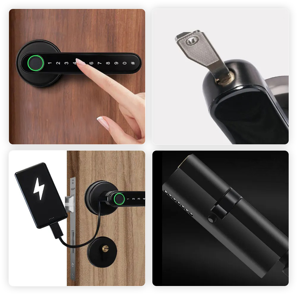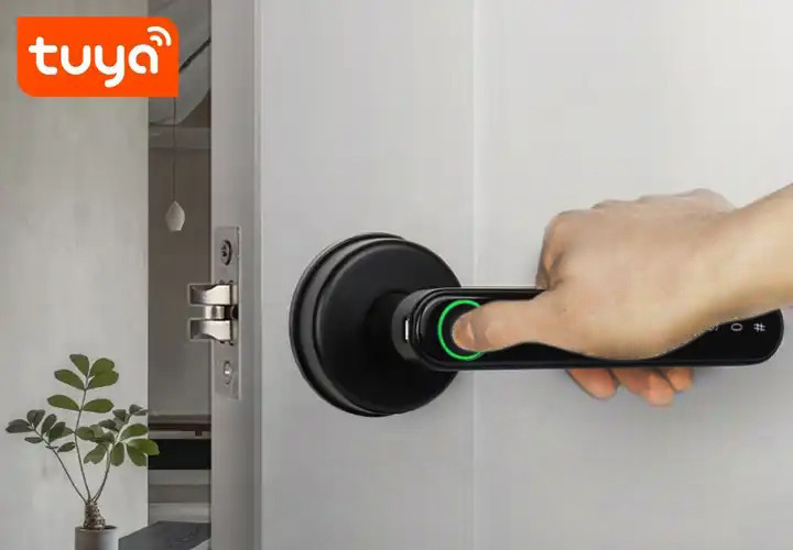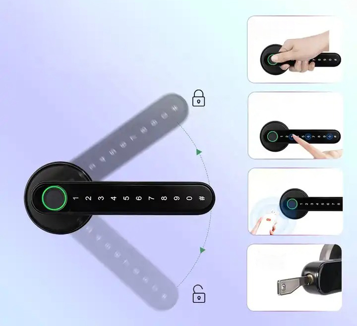 ✅ Otwieranie za pomocą: wirtualnego hasła, aplikacji TUYA, odcisku palca lub kluczem