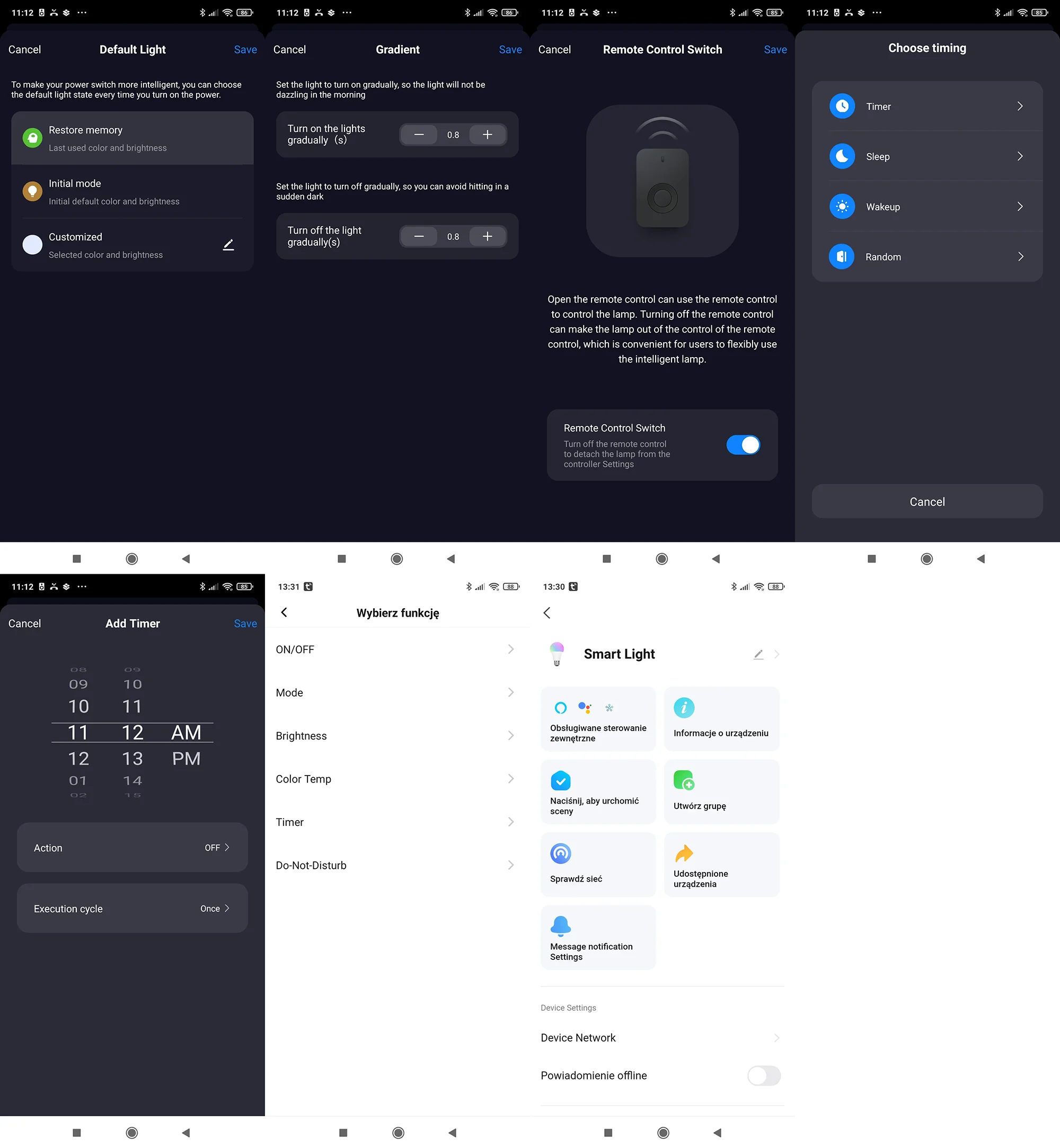Urządzenie posiada bardzo przydatne ustawienie, jakim jest czas załączania lub wyłączania lampy (w sekundach). Możemy ustawić np. 10 s i lampa będzie się rozjaśniała stopniowo przez 10 s. Dzięki temu idealnie sprawdzą się w sypialni lub łazience.