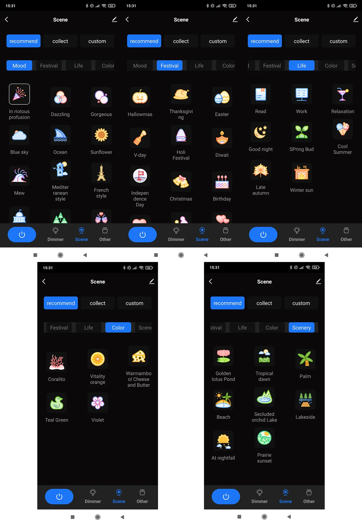 - Tryb dostosowywania scen: Twórz różne scenariusze oświetleniowe.