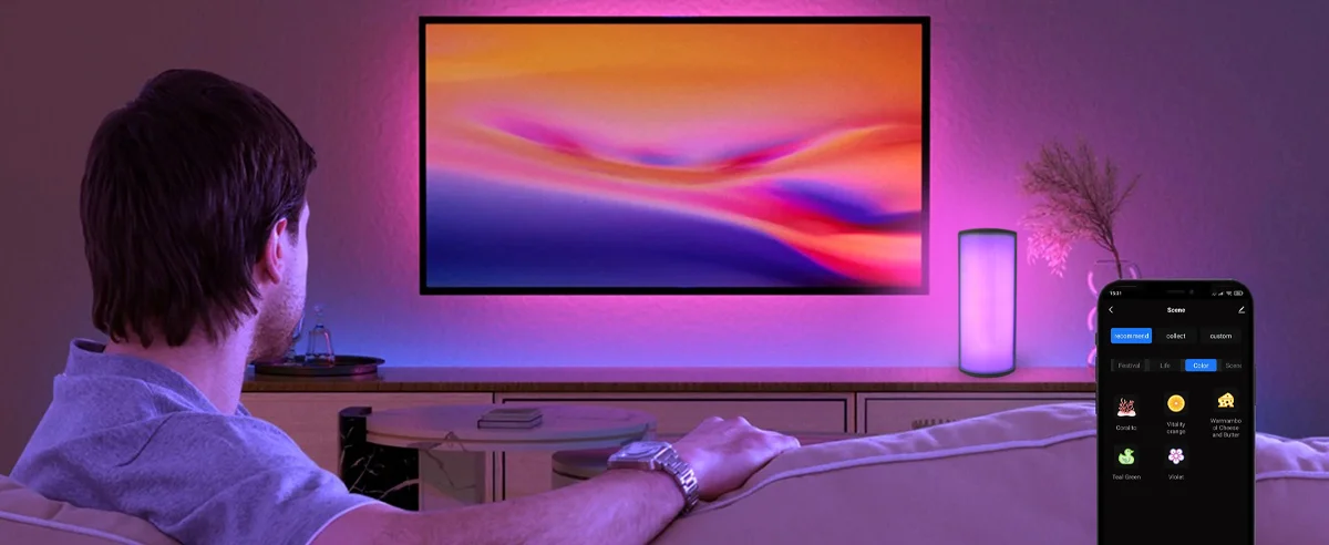 Inteligentna lampka nocna, potrafi całkowicie odmienić nasze postrzeganie przestrzeni. Tryb mieszania światła RGB oraz adresowalne LEDy umożliwią użytkownikowi tworzenie pięknej scenerii.