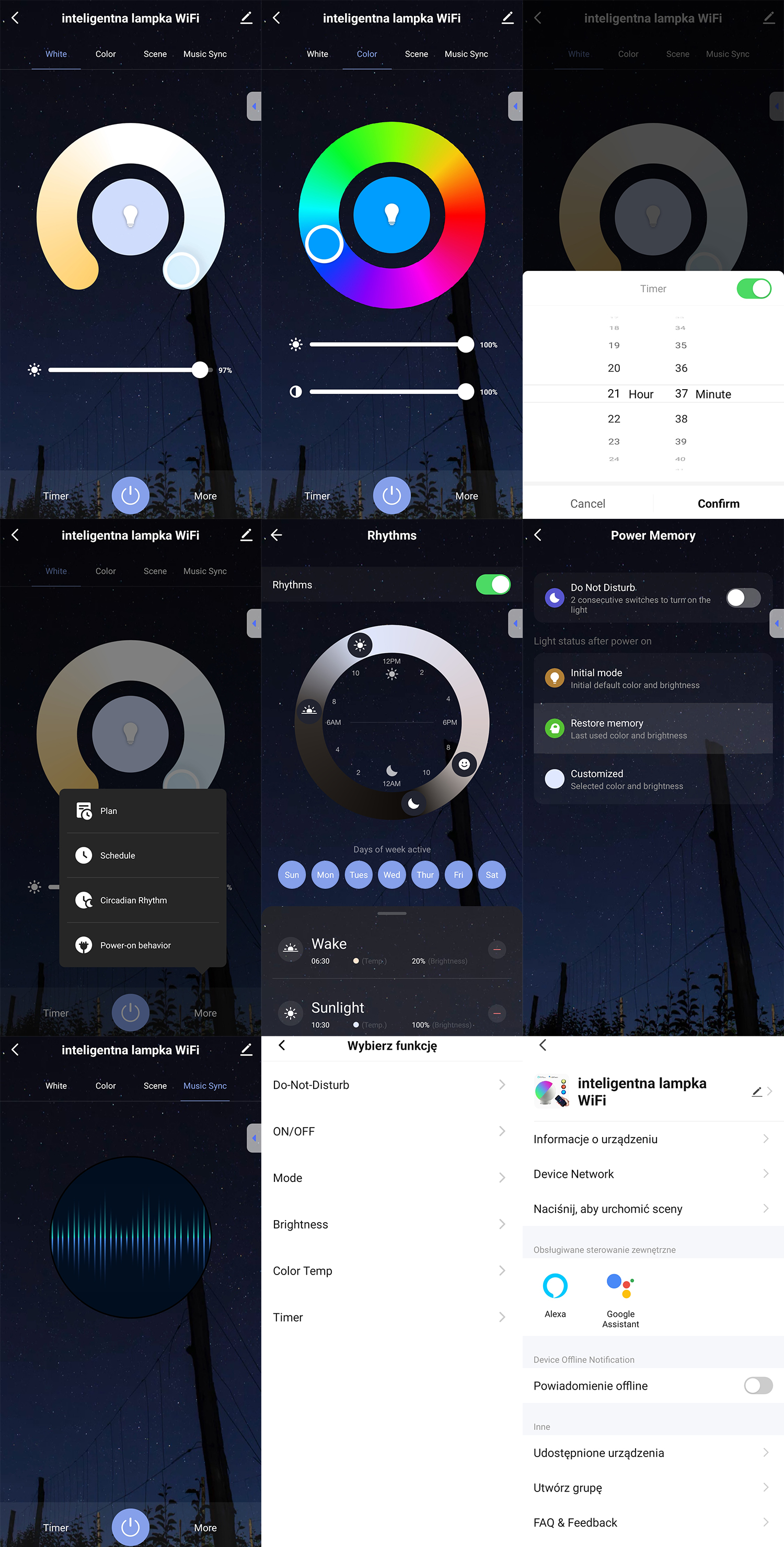 - Sterowanie głosowe: Kontroluj lampę głosowo za pomocą Amazon Alexa i Asystenta Google