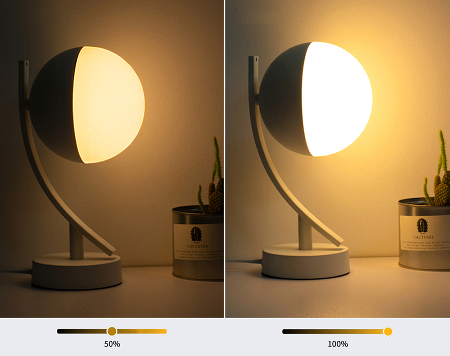 Jasność i temperatura barwowa światła są regulowane (1-100% / 3000-6500 K), umożliwiając dostosowanie atmosfery do potrzeb.