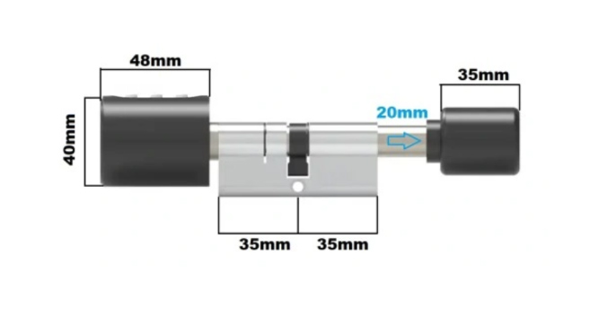 ✅ Cylinder o rozmiarze 70mm pasujący do większości drzwi. Dzięki regulacji wewnętrznego pokrętła będzie pasować do nawet grubszych drzwi.