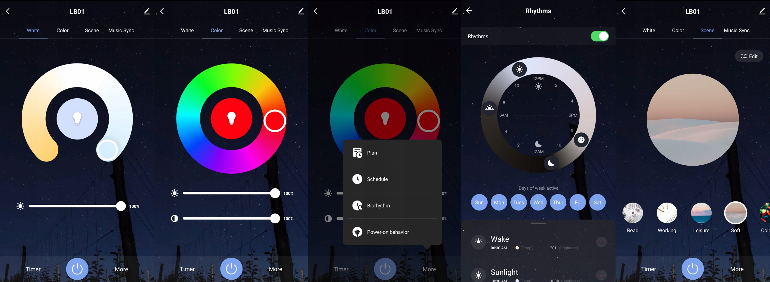 Za pomocą aplikacji w telefonie możesz zdalnie sterować czasem włączania i wyłączania światła. Samodzielnie decydujesz, kiedy oświetlenie ma się włączyć, a kiedy zgasnąć. Żarówka oferuje trzy różne tryby, które możesz dopasować do swoich codziennych potrzeb.