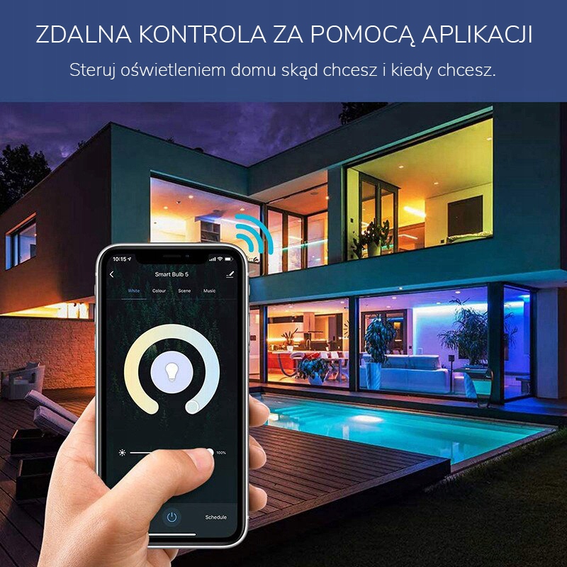 Dzięki dedykowanej aplikacji działającej w chmurze, żarówką możesz sterować z dowolnego miejsca na świecie. Umożliwia to zmianę poziomu jasności, barwy nasycenia oraz koloru światła. Wszystko za pomocą Twojego smartfona, który równie dobrze może znajdować się poza zasięgiem routera. Łączność z internetem zapewni dostęp nawet z sieci komórkowej.