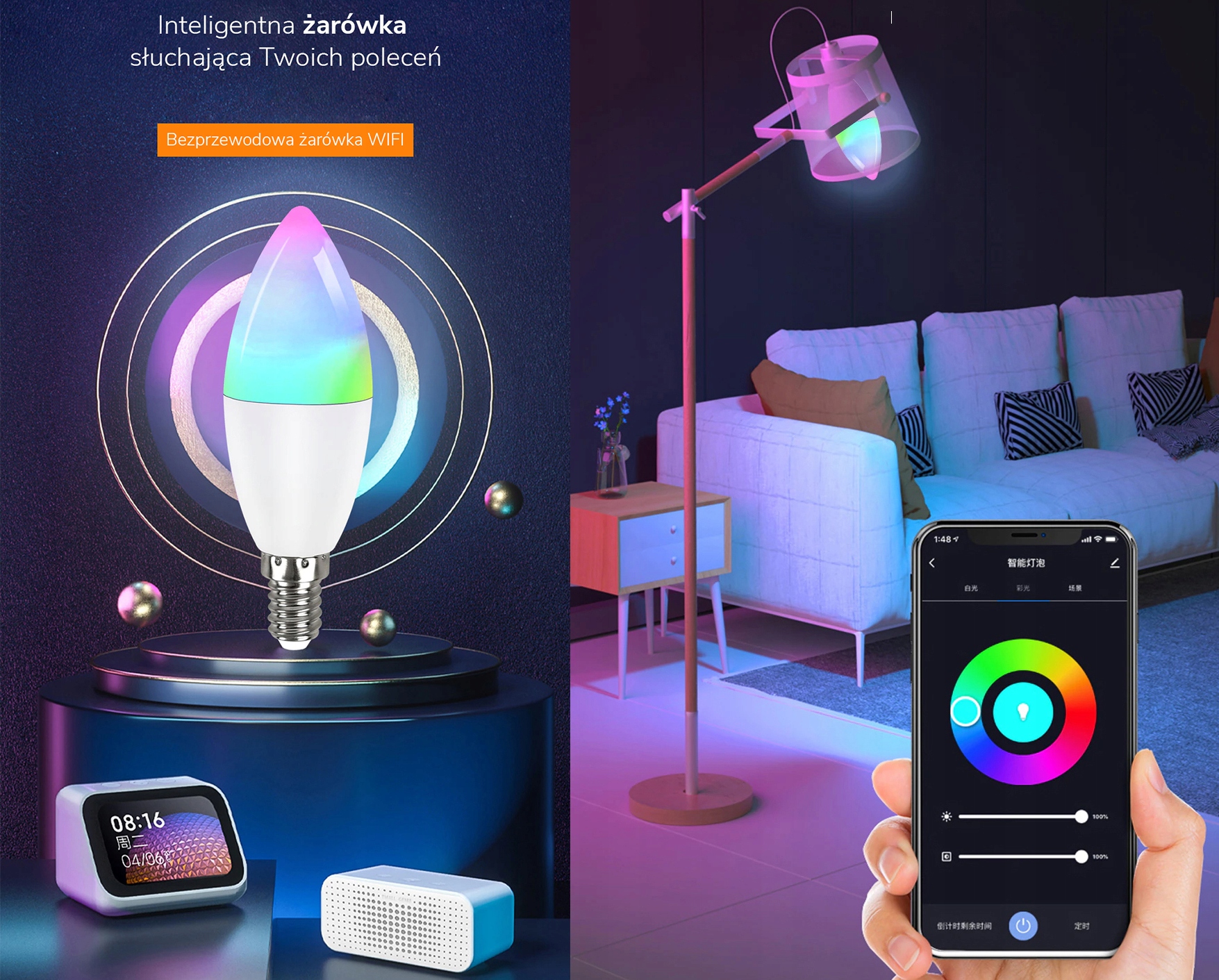 Inteligentna Żarówka E14 RGB+CCT oświetlenie WiFi TUYA Smart