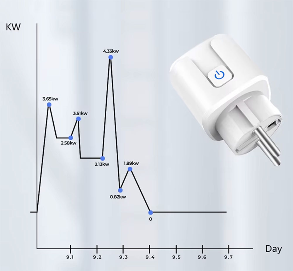 Inteligentne gniazdko 16A Matter WiFi pozwala na monitorowanie zużycia energii w czasie rzeczywistym, co pomaga optymalizować koszty i zmniejszać rachunki za prąd.
