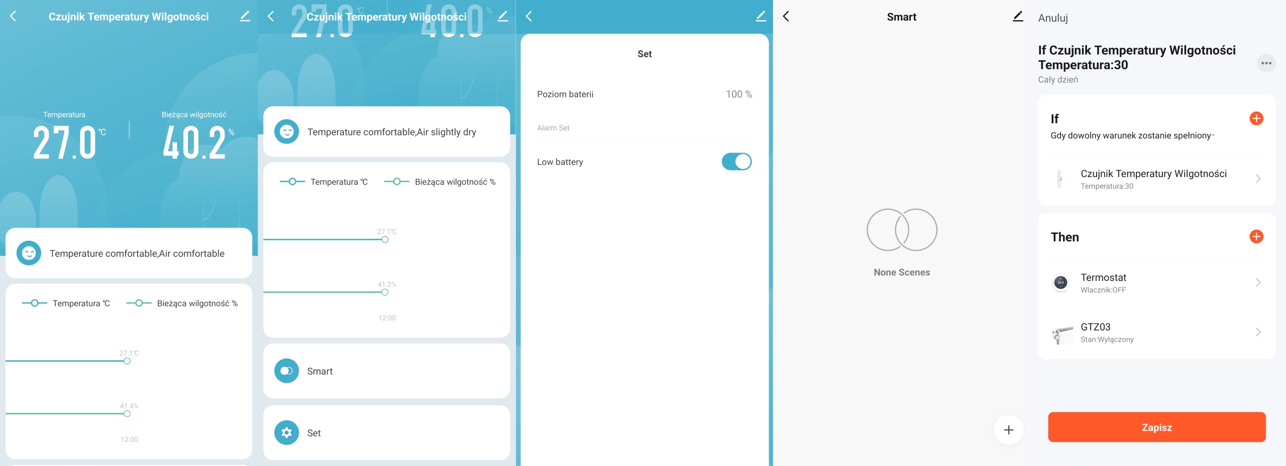 ✅ Automatyzacje: Reakcja na zmiany temperatury i wilgotności, umożliwiająca automatyczne włączanie lub wyłączanie urządzeń, takich jak ogrzewanie, klimatyzacja czy nawilżacze