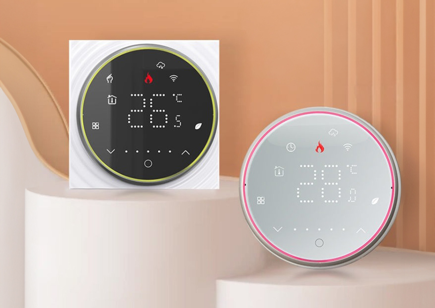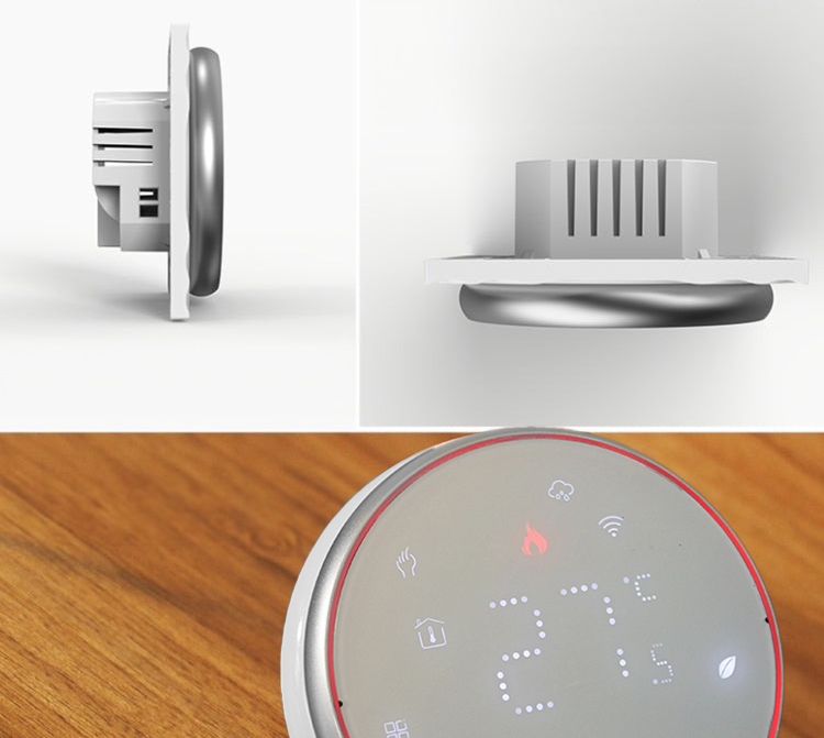 Estetyczny okrągły wyświetlacz przykuwa uwagę, oferowany termostat cyfrowy posiada elegancki i nowoczesny design. Wszystkie jego funkcje mogą być łatwo dostępne i kontrolowane poprzez intuicyjny interfejs użytkownika z aplikacji lub przycisków dotykowych na panelu. Dzięki nowoczesnej konstrukcji idealnie wpasuje się we wszystkie wnętrza domu czy biura.