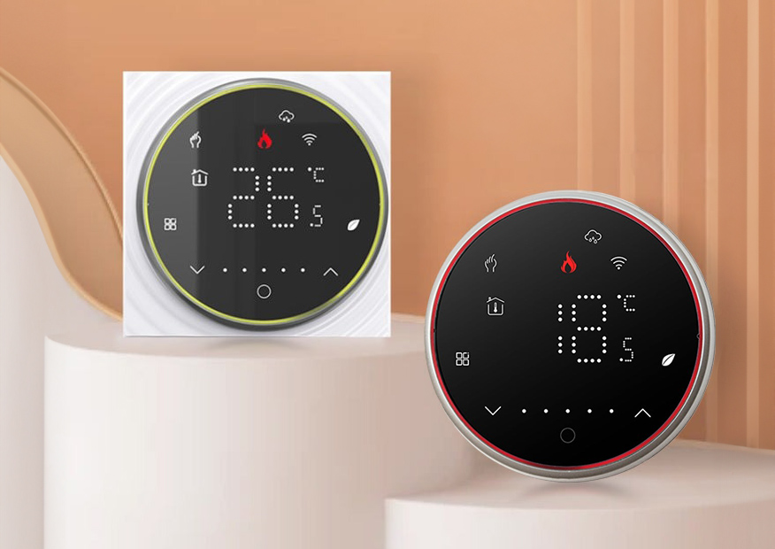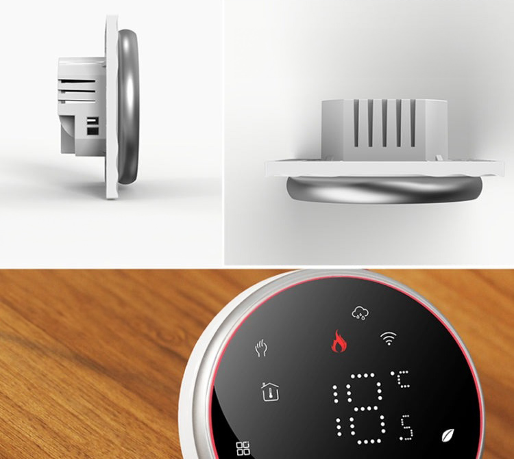 Estetyczny okrągły wyświetlacz przykuwa uwagę, oferowany termostat cyfrowy posiada elegancki i nowoczesny design. Wszystkie jego funkcje mogą być łatwo dostępne i kontrolowane poprzez intuicyjny interfejs użytkownika z aplikacji lub przycisków dotykowych na panelu. Dzięki nowoczesnej konstrukcji idealnie wpasuje się we wszystkie wnętrza domu czy biura.