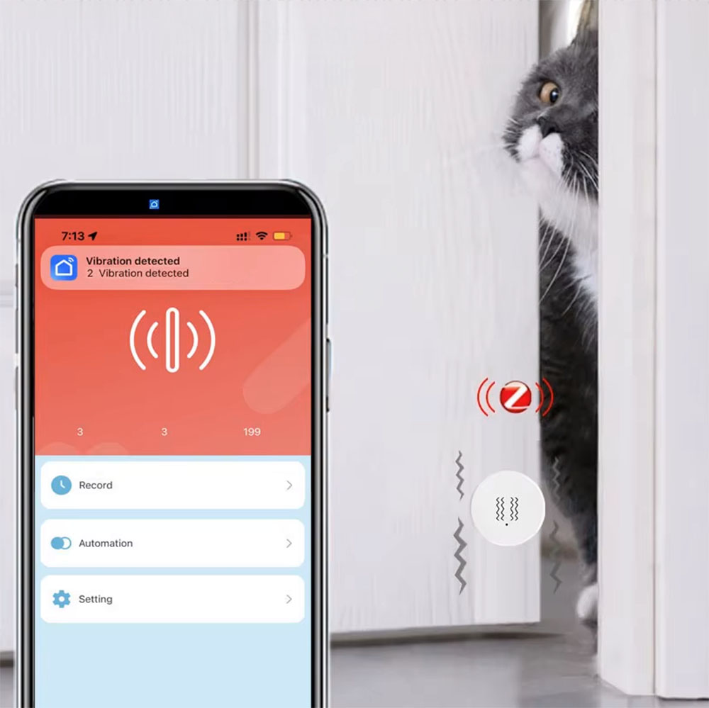 Czujnik wibracji może też zadziałać np. w przypadku drzwiczek dla psa lub kota, dając ci znać, czy zwierzak bezpiecznie wrócił do domu.