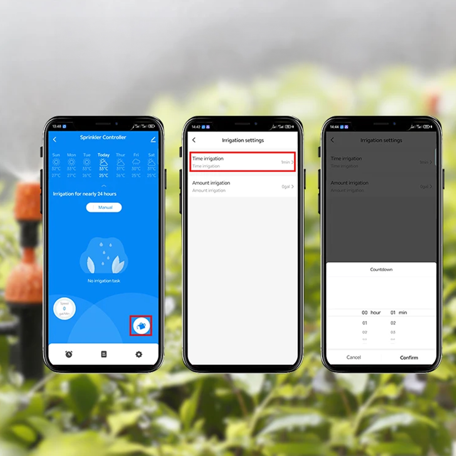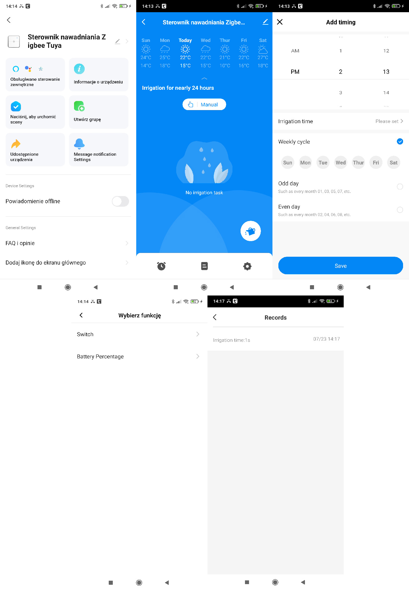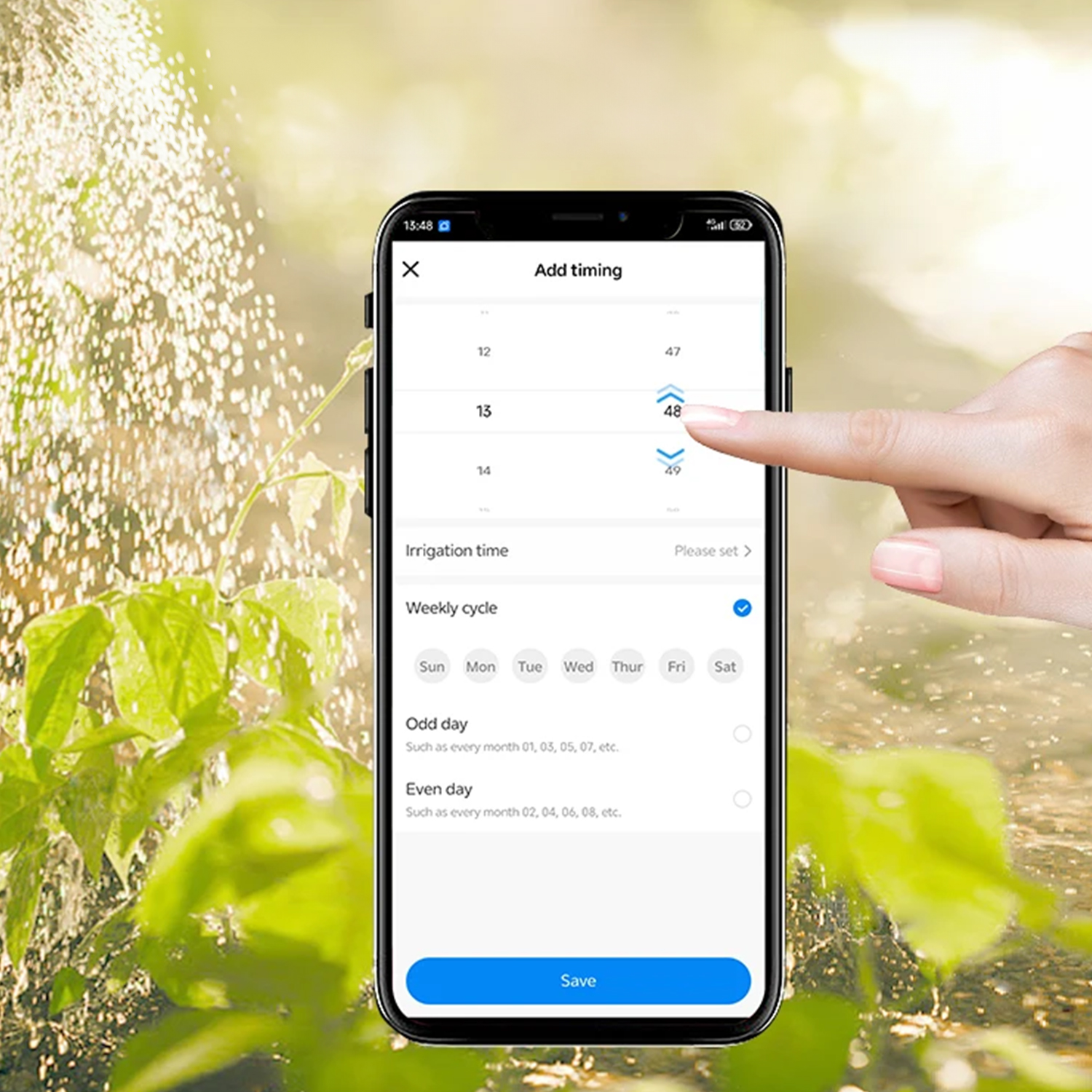 Za pomocą aplikacji TUYA Smart / Smart Life mamy możliwość zdalnego sterowania urządzeniem. Opcje harmonogramu załączania nawadniania i funkcje czasowe w tym urządzeniu pozwalają ustawić precyzyjnie pory irygacji.