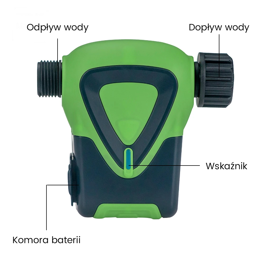 Inteligentny sterownik czasowy przepływu wody posiada zabezpieczenie przed wilgocią i zabrudzeniami IP66. Ponadto wykonanie z trwałego i lekkiego tworzywa ABS doskonale chroni całe urządzenie przed uszkodzeniami mechanicznymi.