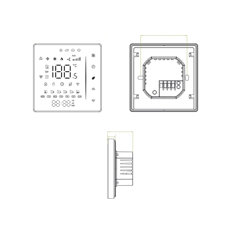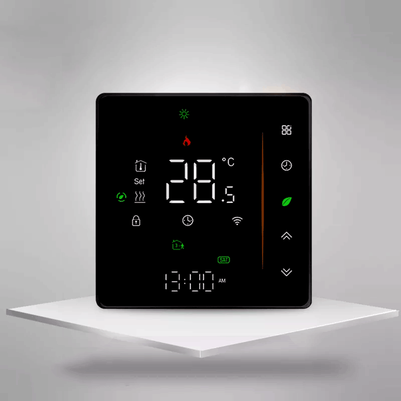 Termostat został wyprodukowany z ekranem nachodzącym na zewnętrzną ramkę. Idelnie pasuje do nowoczesnego wnętrza. Duży dotykowy ekran posiada możliwość dostosowania jasności w dwóch programach między 7:00 - 22:00 i 22:00 - 06:00. Dwa tryby oświetlenia sprawią, że urządzenie będzie mniej inwazyjne od tradycyjncyh termostatów dla wystroju Twojego wnętrza.