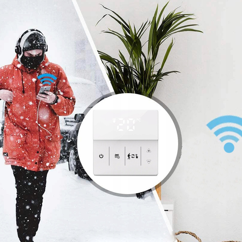 Oferowany model z funkcją termostatu oraz sterowania poprzez aplikację WiFi posiada w pełni programowalny interfejs. Możesz ustawić harmonogram włączeń na 7 dni w tygodniu, do sześciu zmian cykli na dobę. Możesz z łatwością dostosować cykle temperatury do swoich potrzeb. Sterowanie termostatem nigdy nie było tak łatwe. Wystarczy, że zmienisz parametry w aplikacji w swoim telefonie gdziekolwiek jesteś.