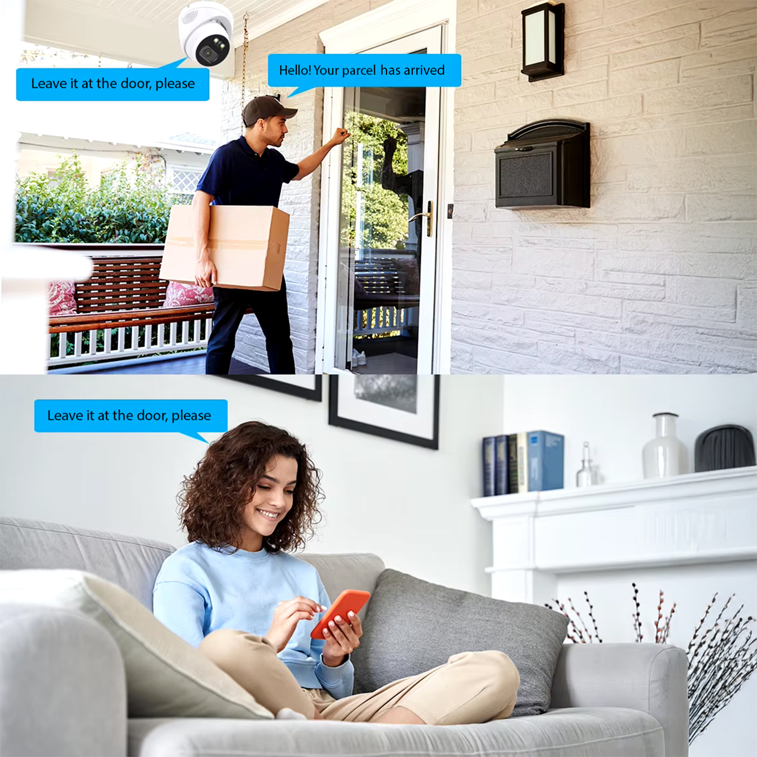 Urządzenie wyposażone jest zarówno w głośnik jak i mikrofon, co umożliwia prowadzenie rozmów z osobami w zasięgu kamery. Taka funkcja ma zastosowanie choćby przy odbiorze przesyłek kurierkich, oraz wielu innych okolicznościach. Rozmowy możesz wygodnie prowadzić poprzez aplikację TUYA.