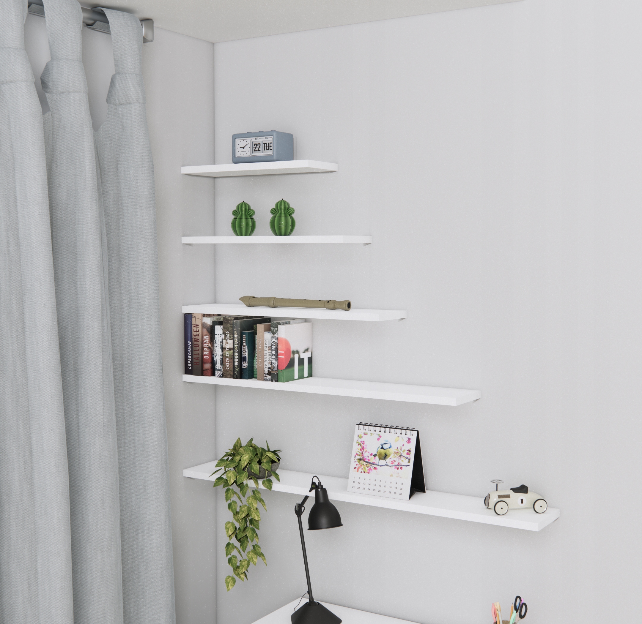 Komplet, 5 x półka wisząca ścienna, nowoczesna, biała, niewidoczny montaż