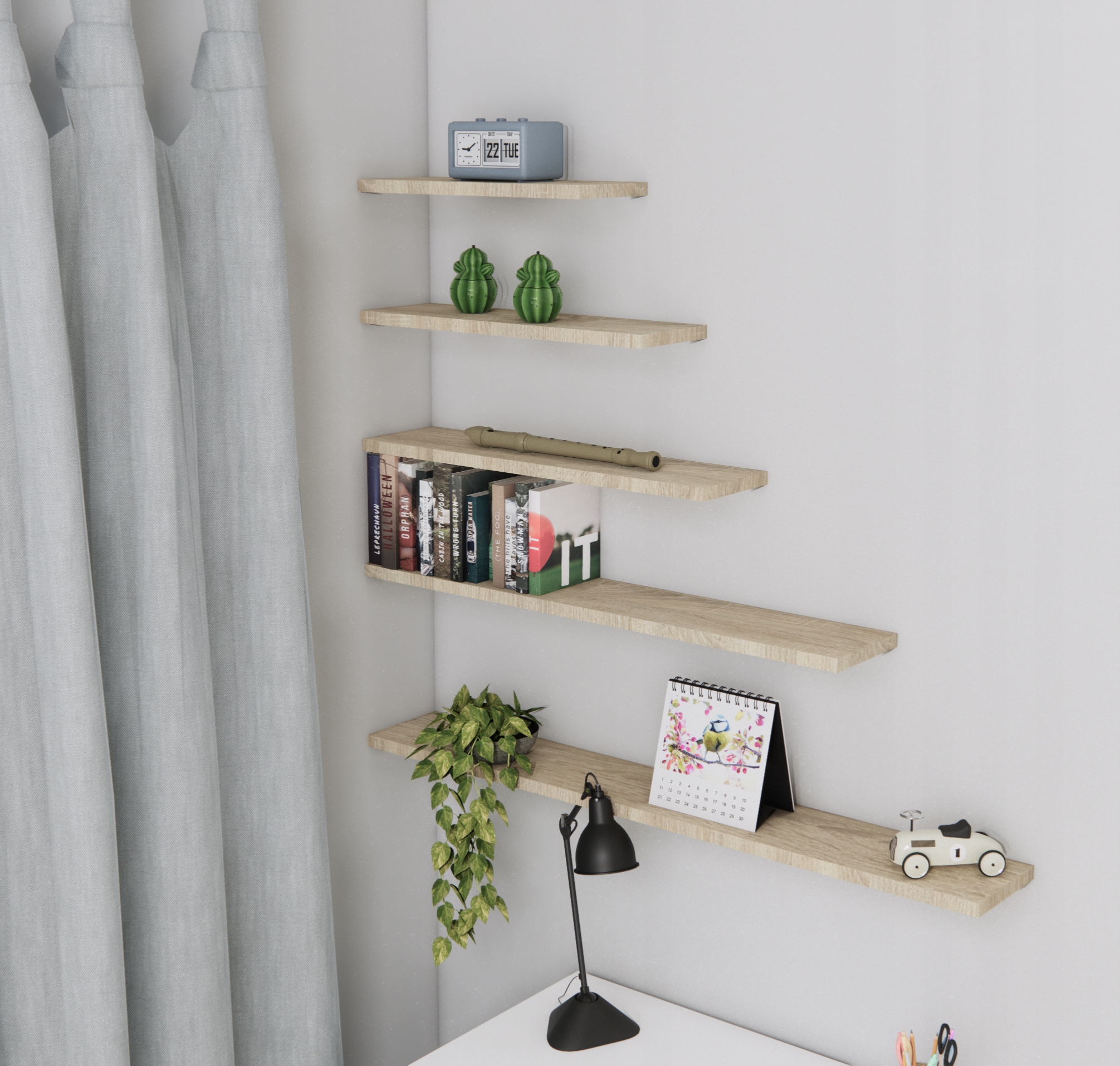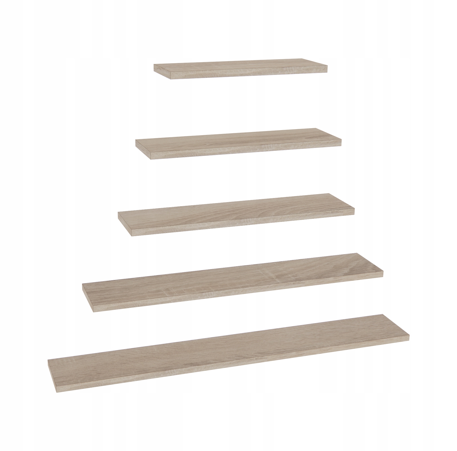 Komplet, 5xpółka wisząca ścienna, nowoczesna, dąb sonoma