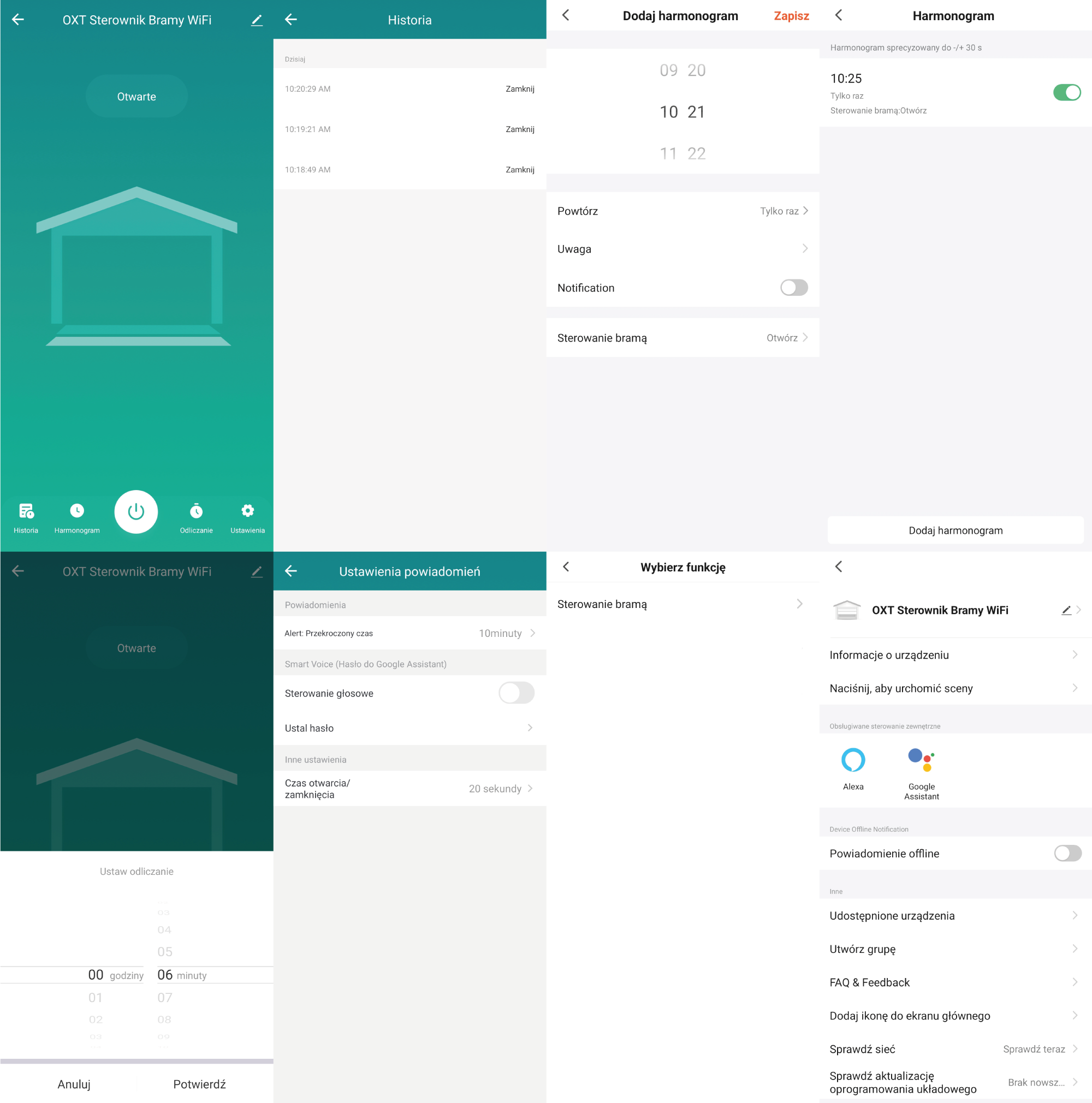 - Ustalanie harmonogramów, timerów lub odliczania do zamknięcia/otwarcia bramy