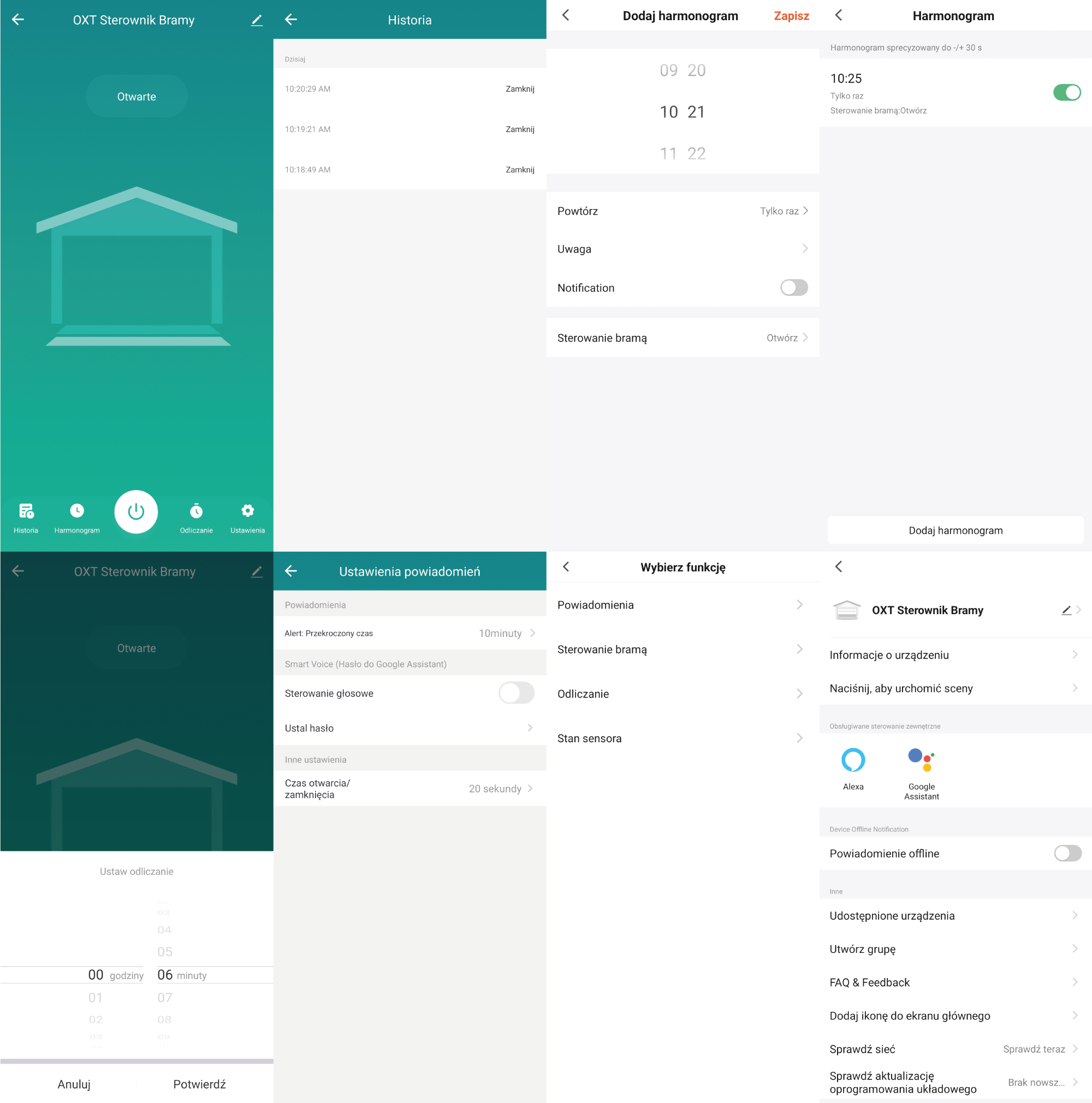 - Ustalanie harmonogramów, timerów lub odliczania do zamknięcia/otwarcia bramy