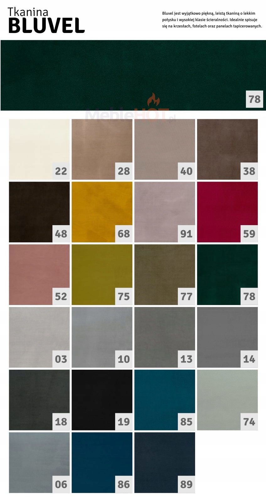 Dostępne do wyboru tkaniny znajdują się poniżej (nazwę wybranej tkaniny prosimy podać w informacjach dla sprzedającego).