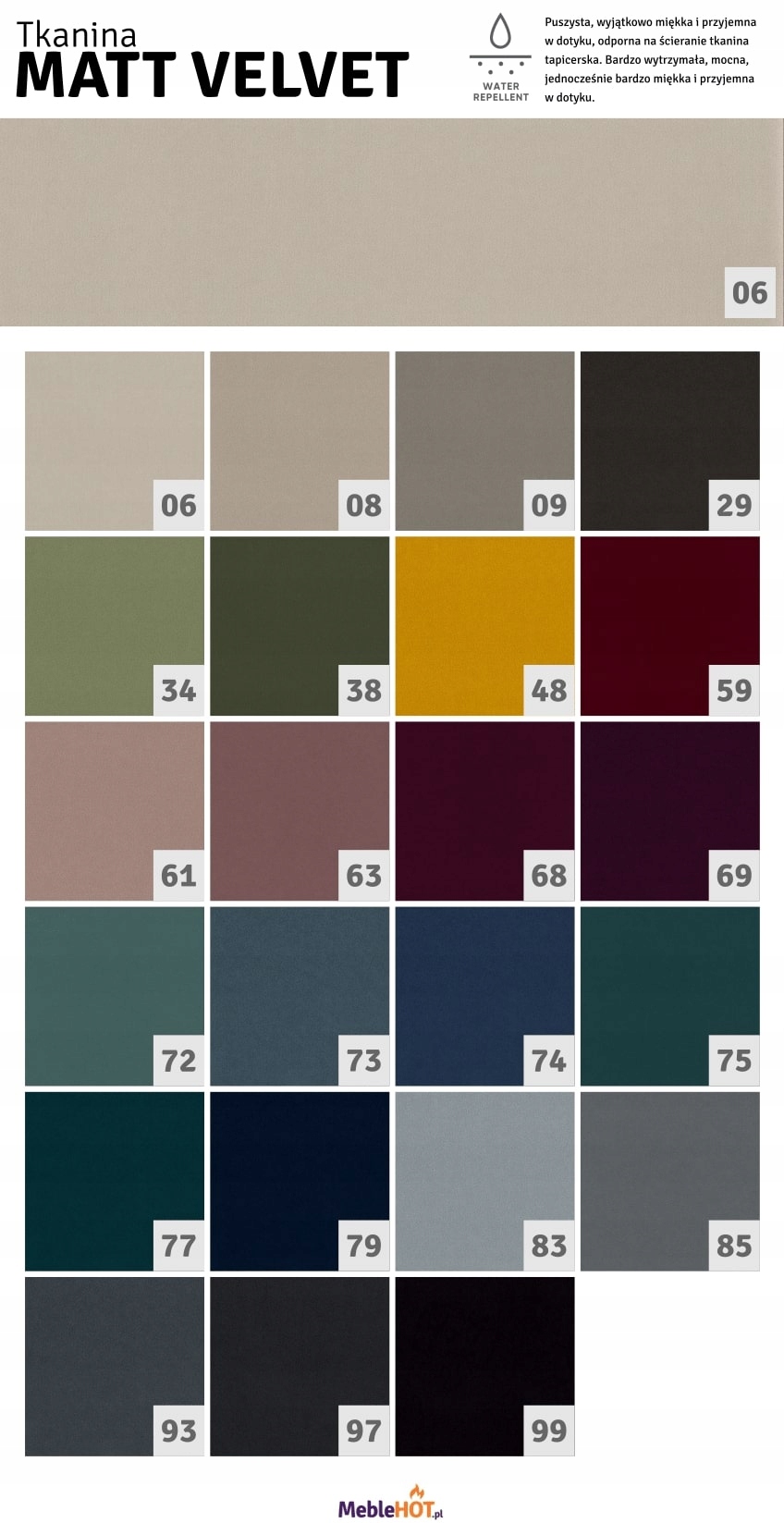 Dostępne do wyboru tkaniny znajdują się poniżej (nazwę wybranej tkaniny prosimy podać w informacjach dla sprzedającego).