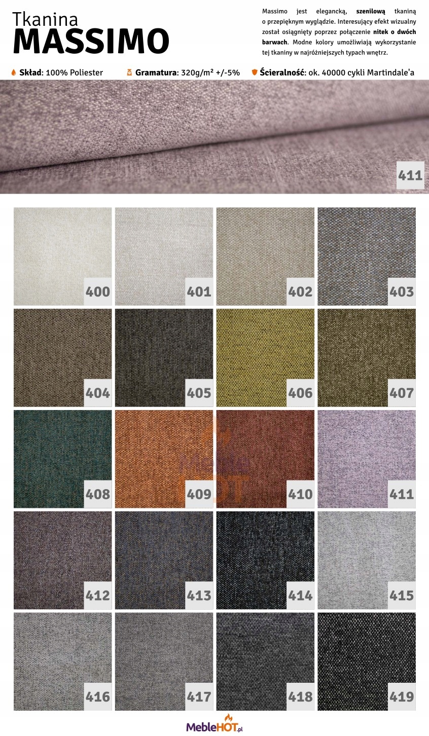 W ofercie również dostępne tkaniny o właściwościach EASY CLEAN (za dopłatą).