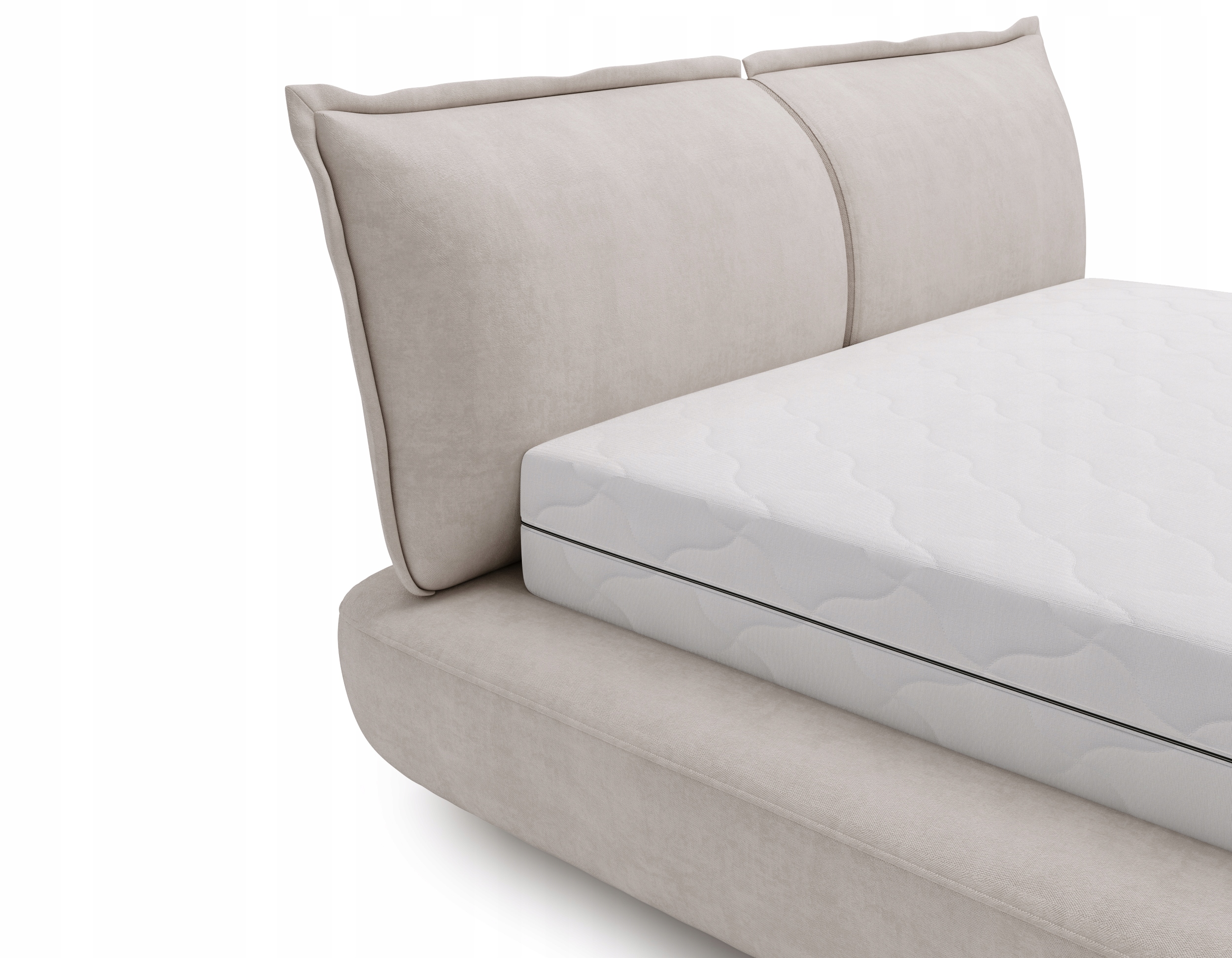 Dwa szerokie oparcia wykończone tą samą tapicerką co reszta łóżka. Są wygodne i nadają całości miękkości wizualnej.