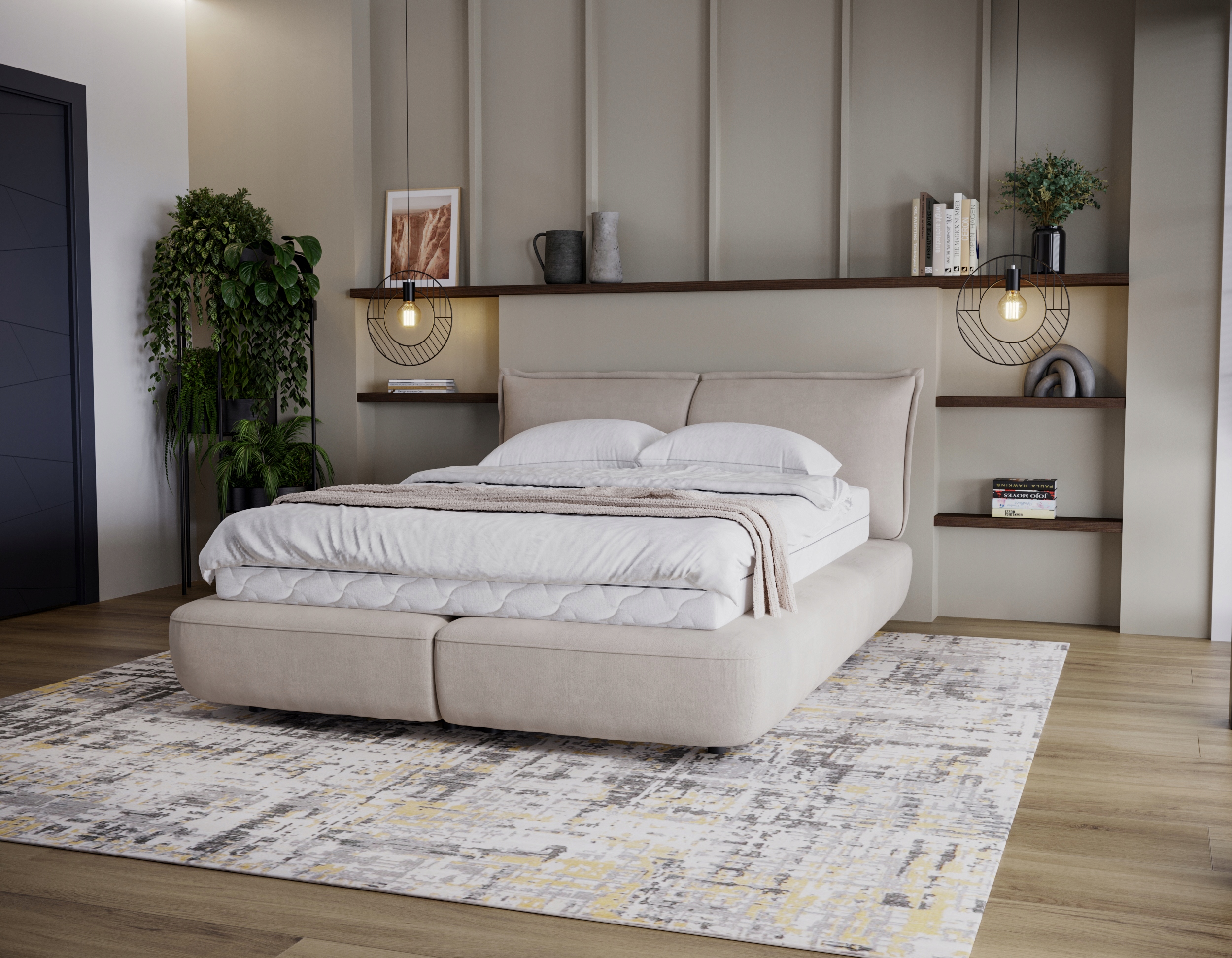 To łóżko zaprojektowane z myślą o osobach, które nie chcą pojemników, siłowników i ciężkich form. SOFIA prezentuje się lekko i nowocześnie, nie przytłaczając przestrzeni.