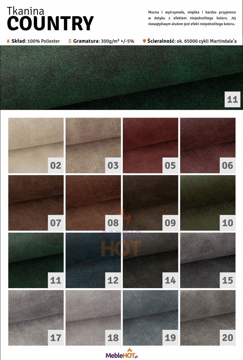 - Tapicerka: Castel 15 – miękka, stylowa tkanina w uniwersalnym kolorze