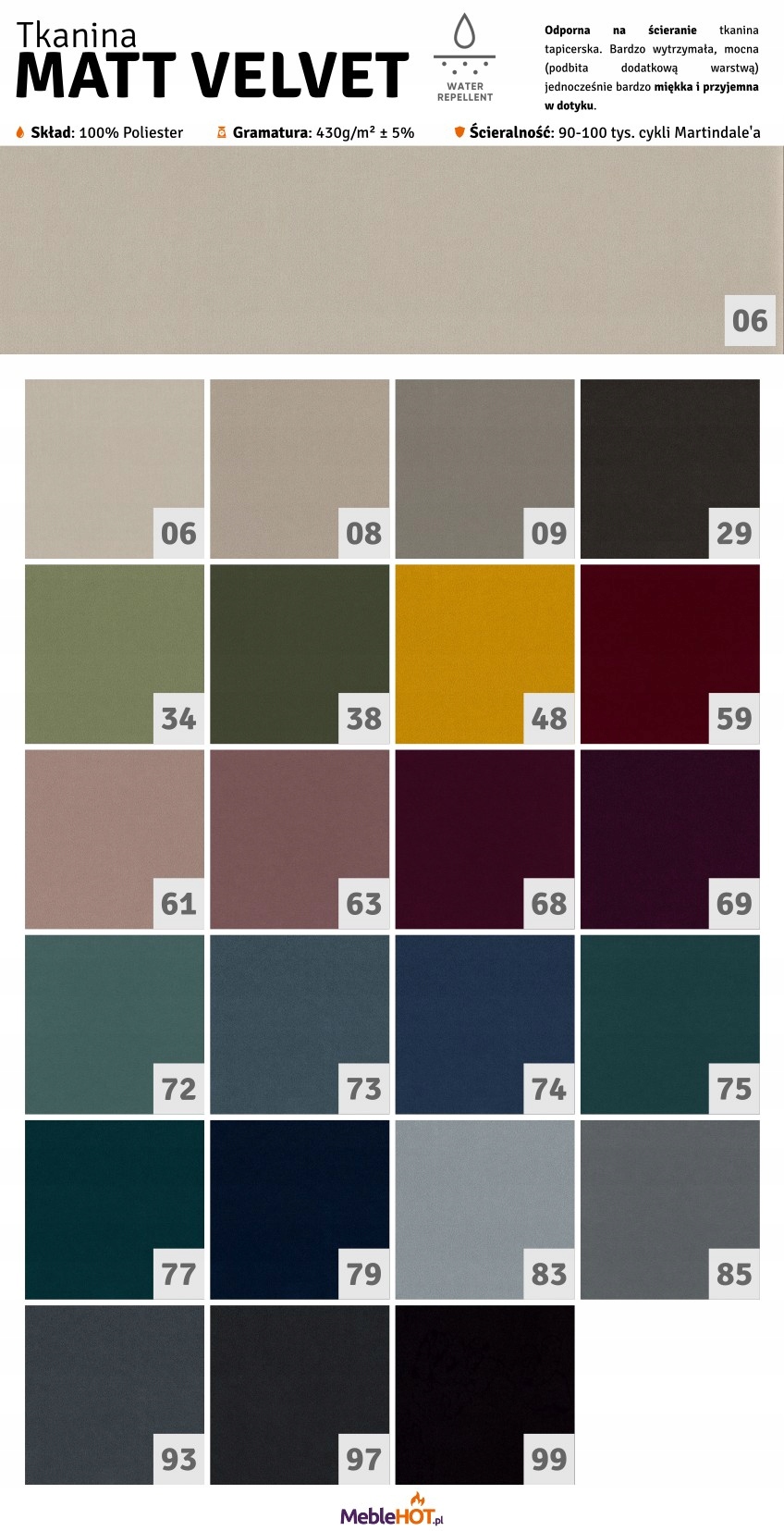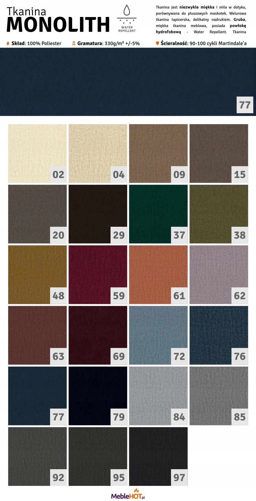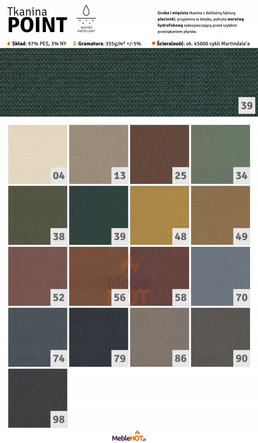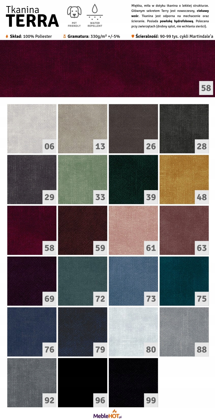 Dostępne do wyboru tkaniny znajdują się poniżej (nazwę wybranej tkaniny prosimy podać w informacjach dla sprzedającego).