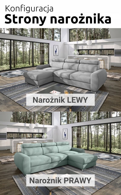 Nowoczesny narożnik SOFIA regulowane zagłówki