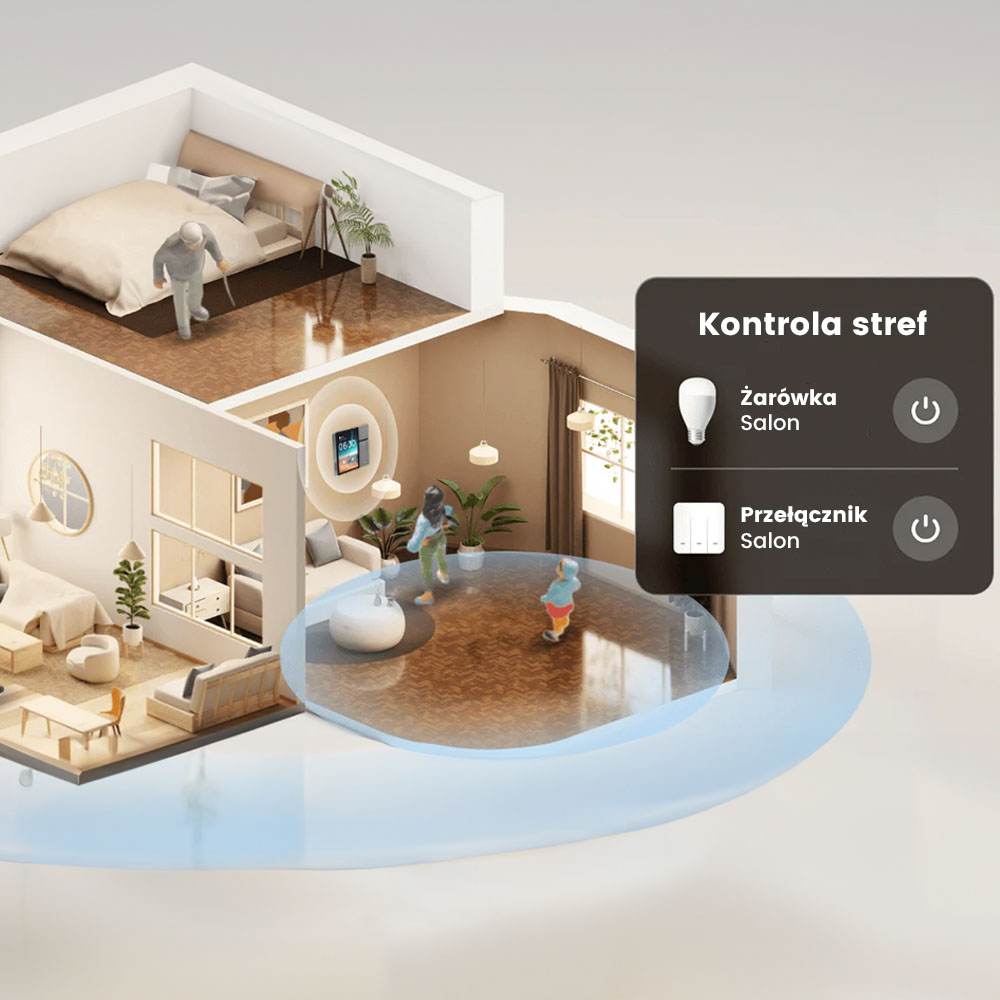 - ✅ Sterowanie strefami umożliwia niezależną pracę urządzeń dla pojedynczego pomieszczenia, kilku pomieszczeń lub wszystkich pomieszczeń jednocześnie