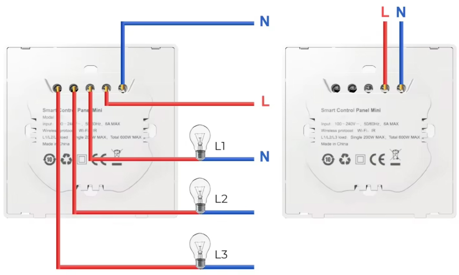 - ✅ 3 asymetryczne fizyczne przyciski sterujące z jasnym podświetleniem, którym można przypisać np. 3 obwody oświetlenia lub przypisanie ich do określonych scen wykonawczych, skonfigurowanych w aplikacji TUYA