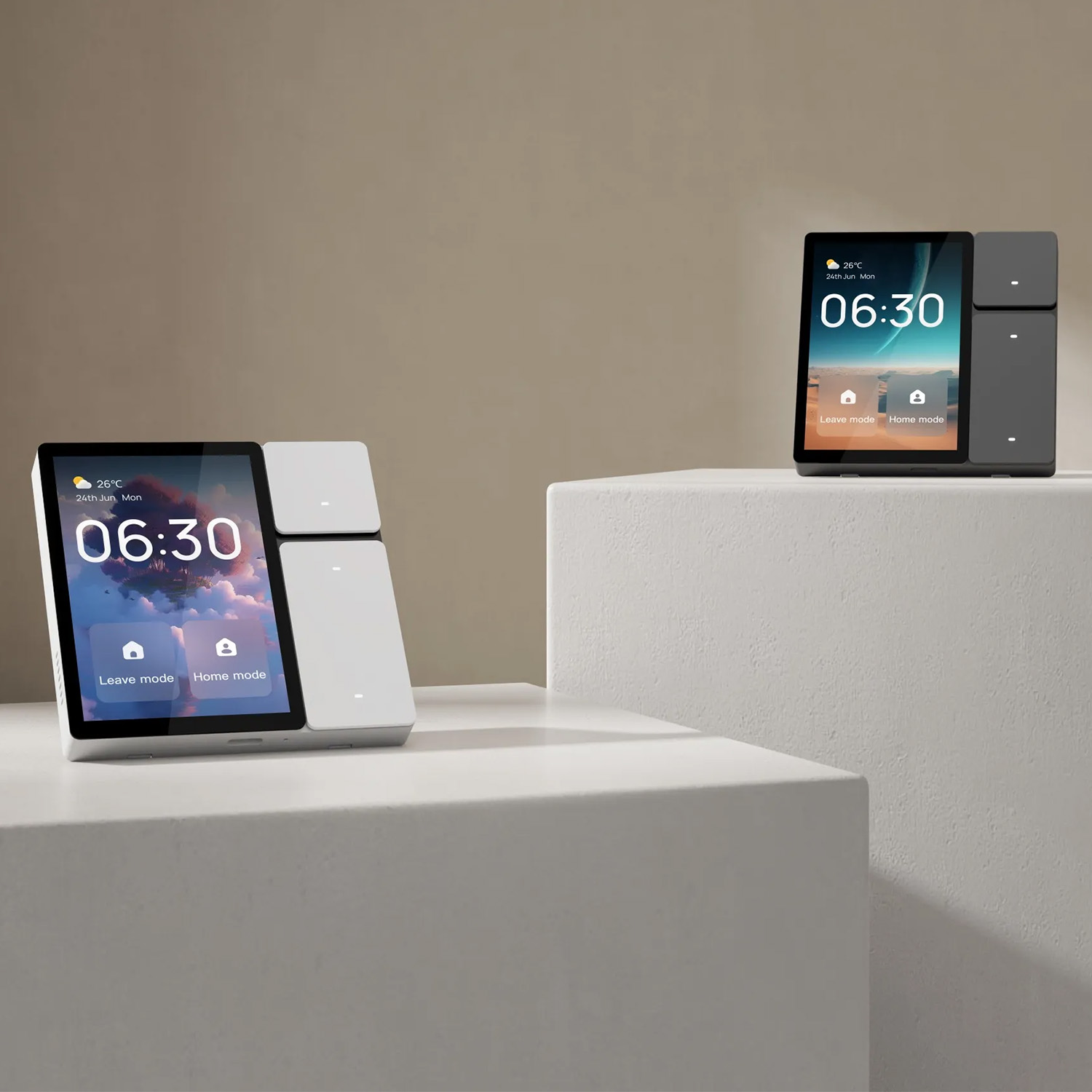 Panel posiada dotykowy 3,5-calowy wyświetlacz i konfigurowalne przyciski fizyczne, którym można przypisać poszczególne opcje i dzięki temu spersonalizować urządzenie pod swoje potrzeby. Urządzenie oprócz zdalnego sterowania inteligentnymi urządzeniami będzie również doskonałym zabezpieczeniem Twojego domu. W przypadku uruchomienia np. czujki dymu, ruchu lub zalania panel uruchomi alarm i powiadomi użytkownika o zdarzeniu. Dodatkowo po sparowaniu panelu z wideodomofonem możliwe jest prowadzenie wideorozmów z osobami oczekującymi na wejście.