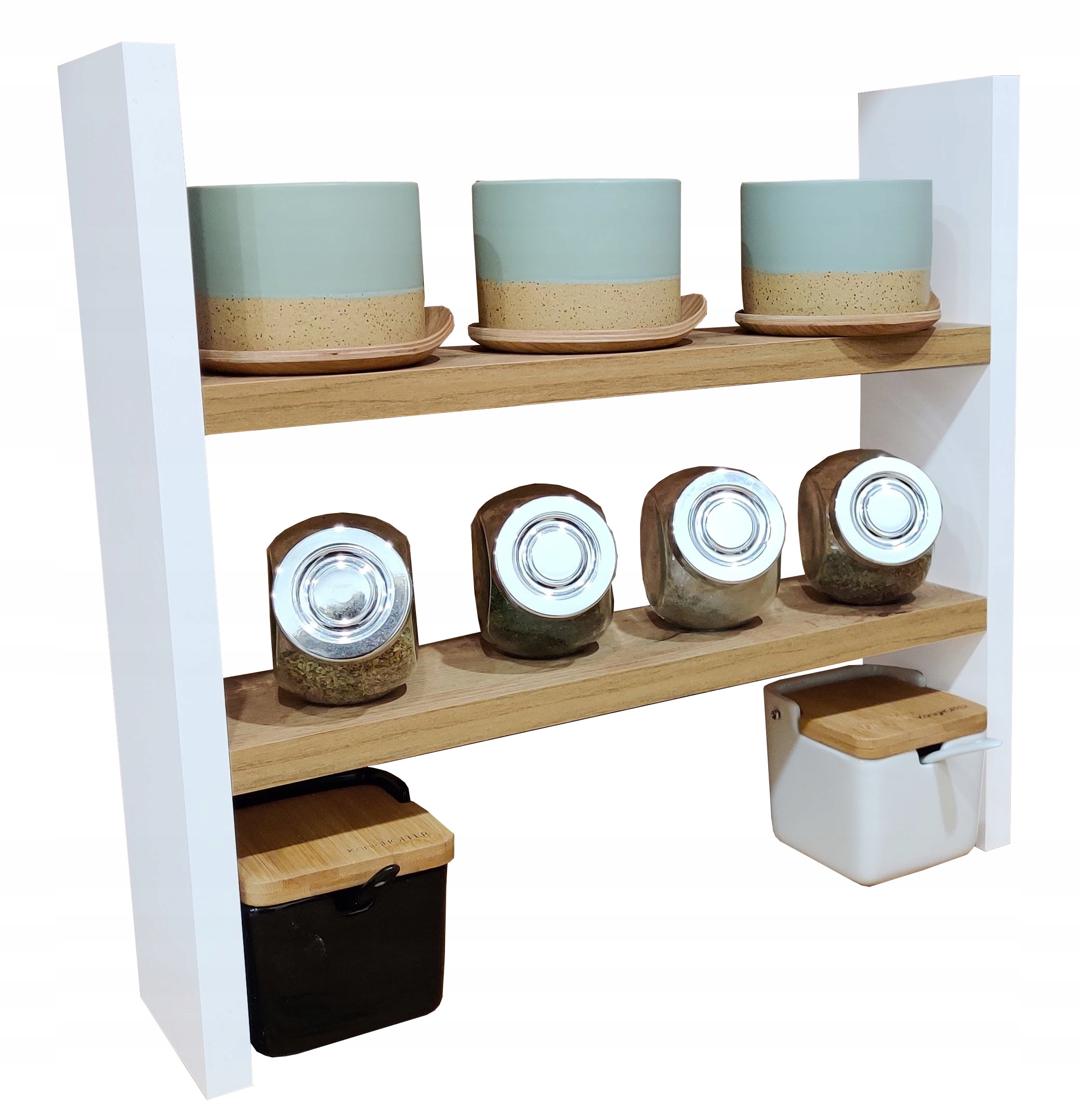 Półka nablatowa, regalik kuchenny, biały/dąb wotan