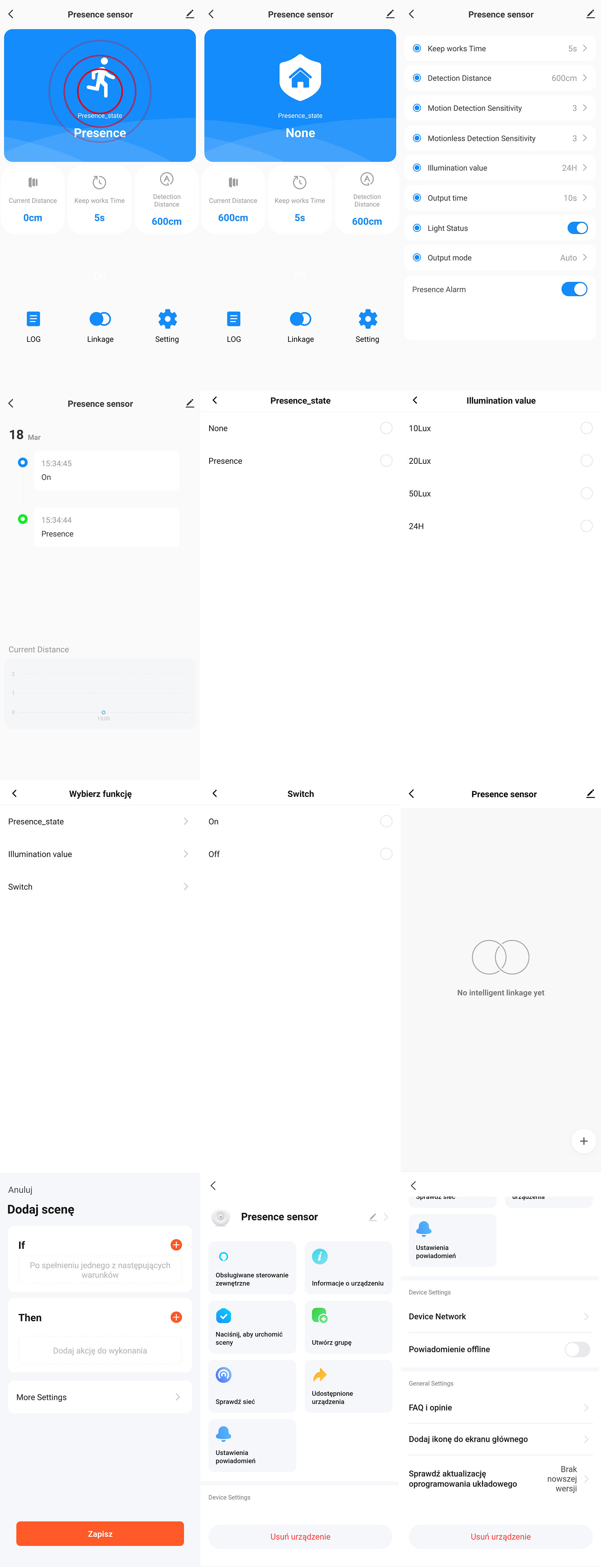 ✅ Możliwość ustawienia wielu parametrów, takich jak zasięg detekcji, wyjścia czy poziom oświetlenia