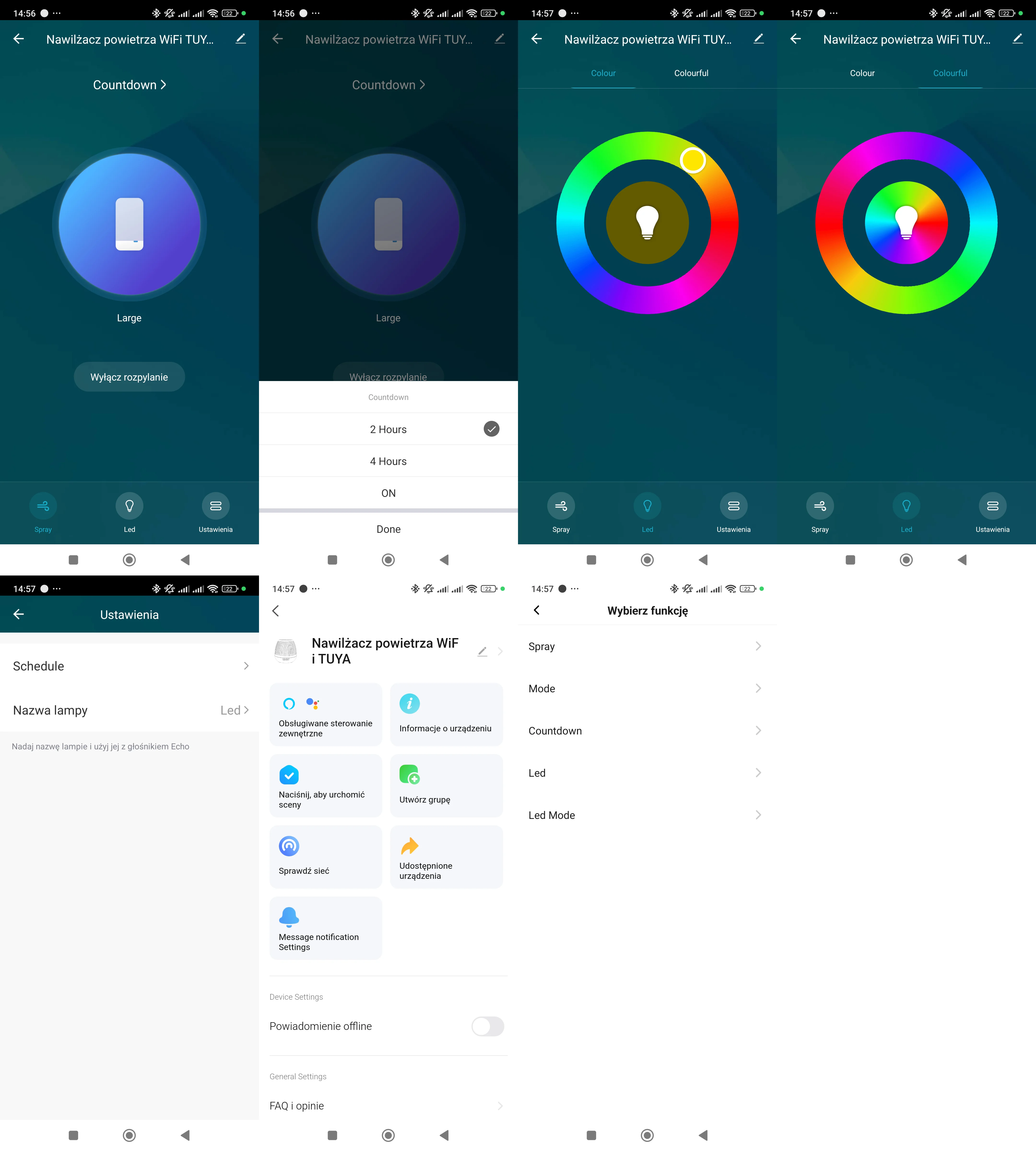 - Możliwość tworzenia harmonogramów pracy urządzenia (osobne dla podświetlenia i uwalniania pary)