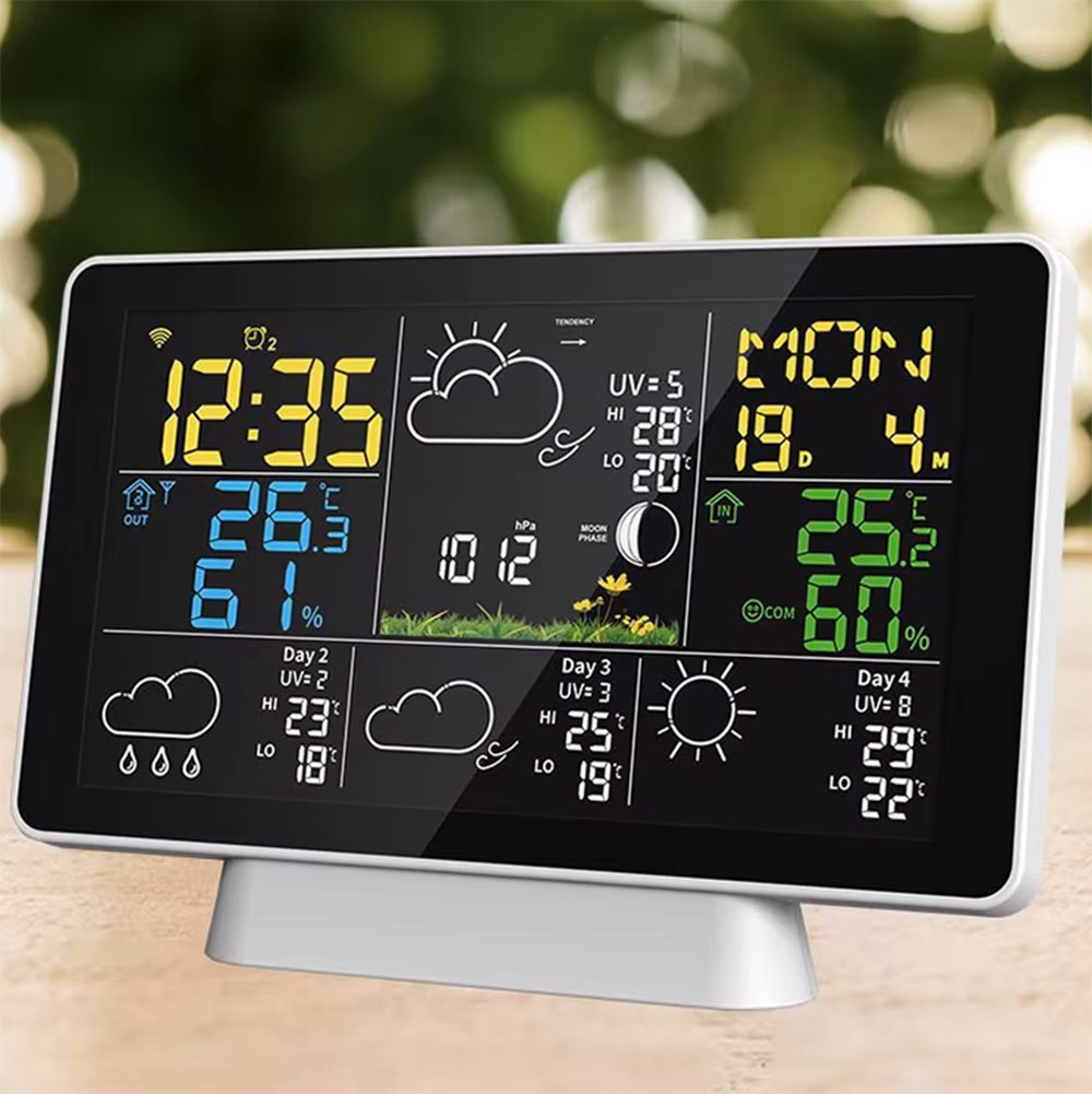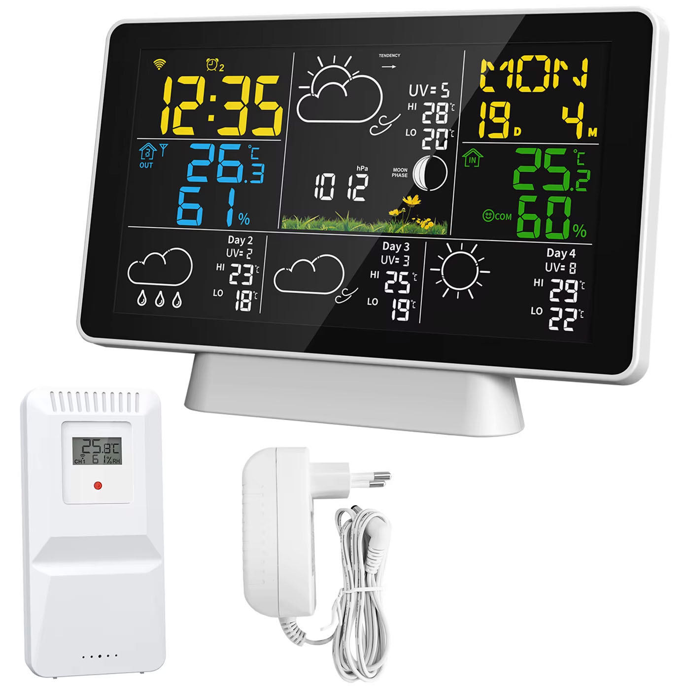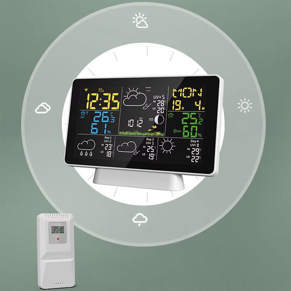 ➡️ Nowoczesna stacja pogodowa WiFi TUYA z kolorowym ekranem LCD HD to idealne urządzenie do monitorowania warunków atmosferycznych zarówno wewnątrz, jak i na zewnątrz Twojego domu.