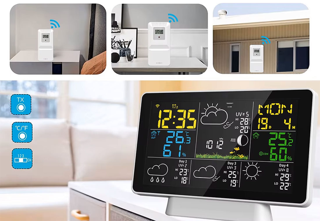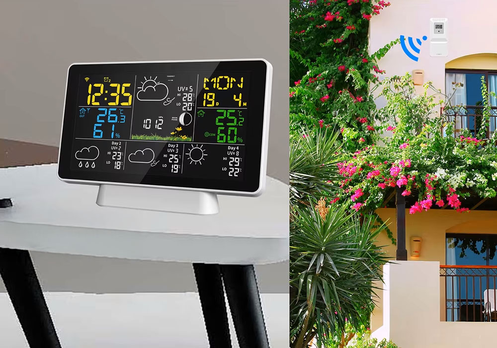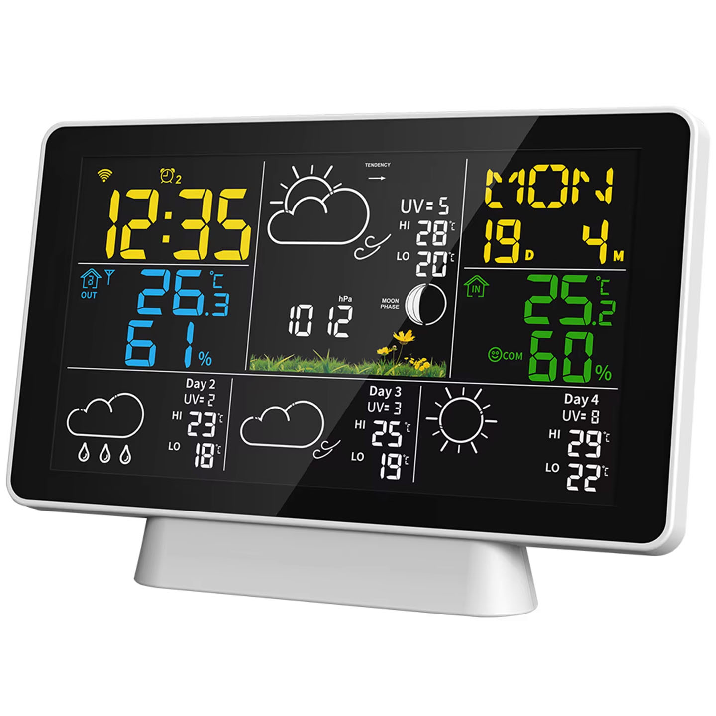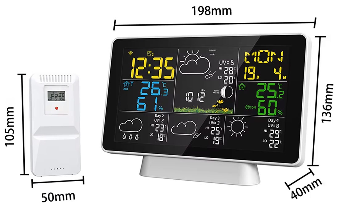 ➡️ Nowoczesna stacja pogodowa WiFi TUYA z kolorowym ekranem LCD HD to idealne urządzenie do monitorowania warunków atmosferycznych zarówno wewnątrz, jak i na zewnątrz Twojego domu.