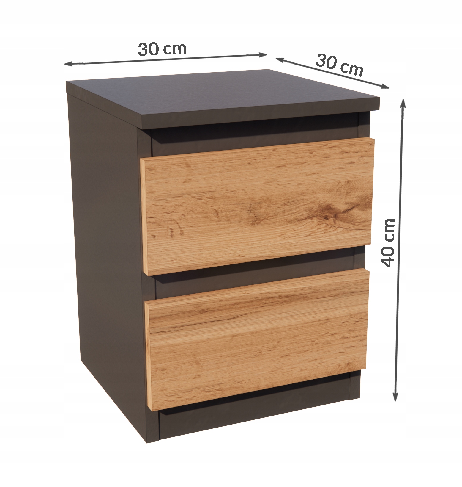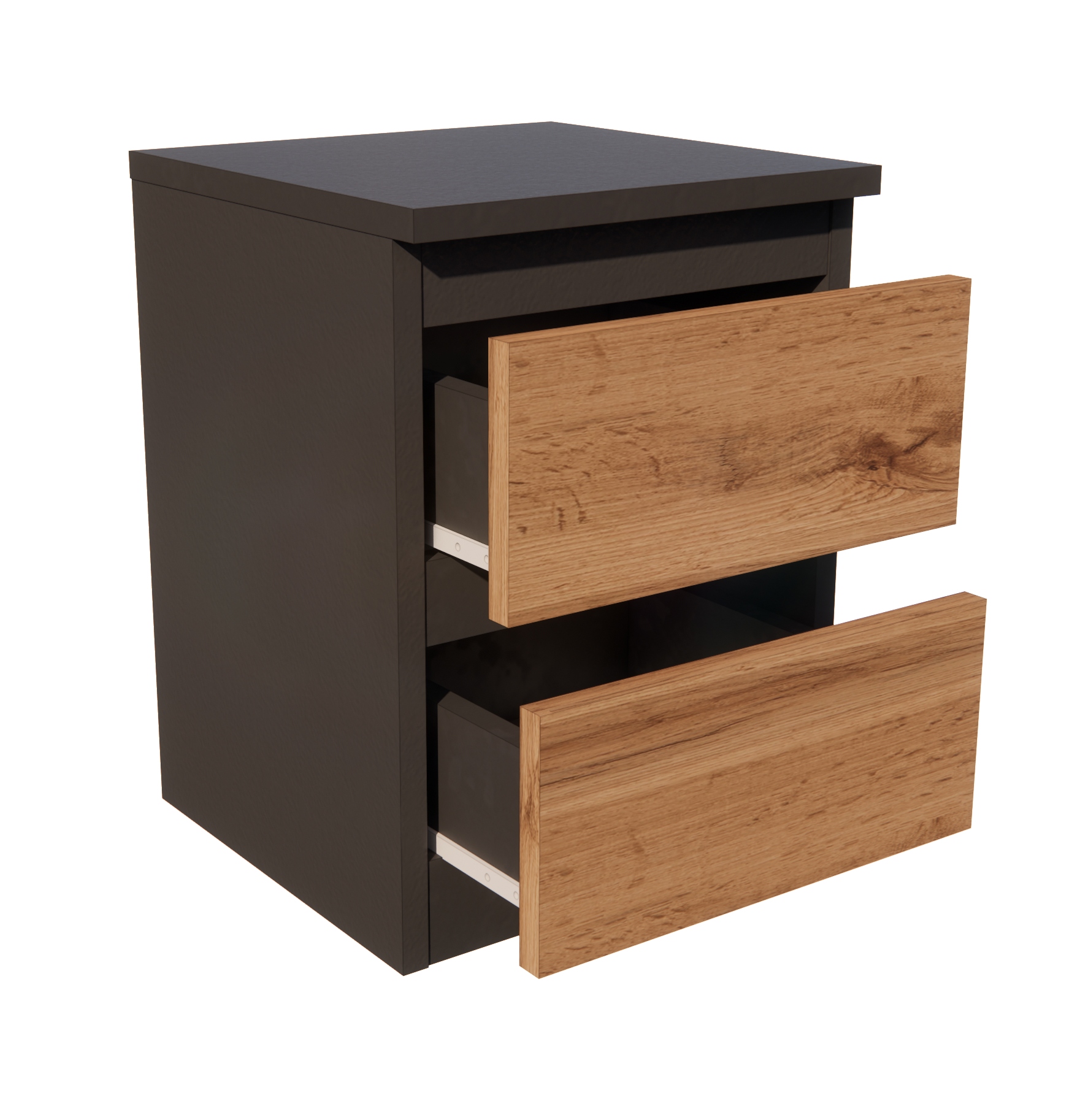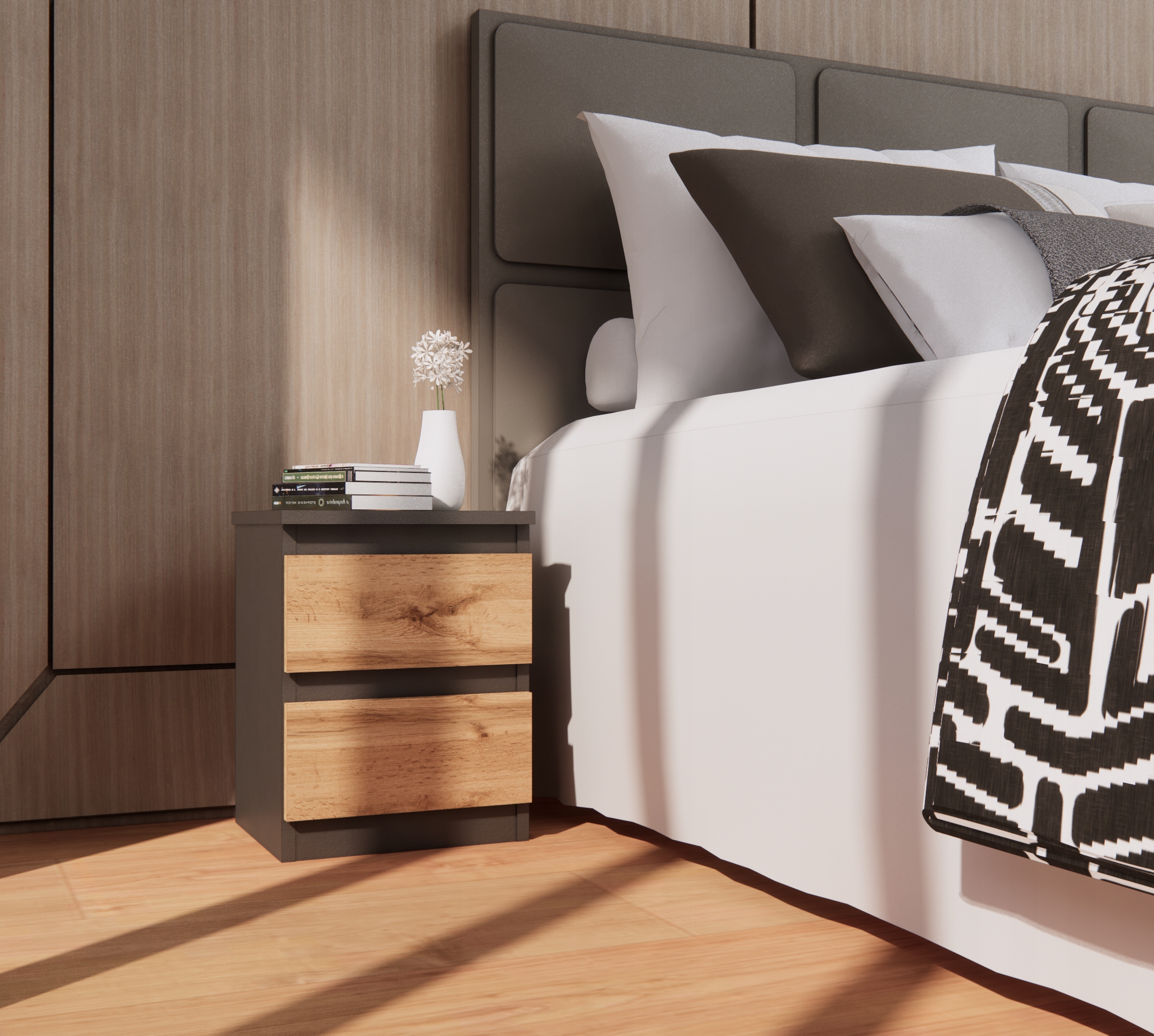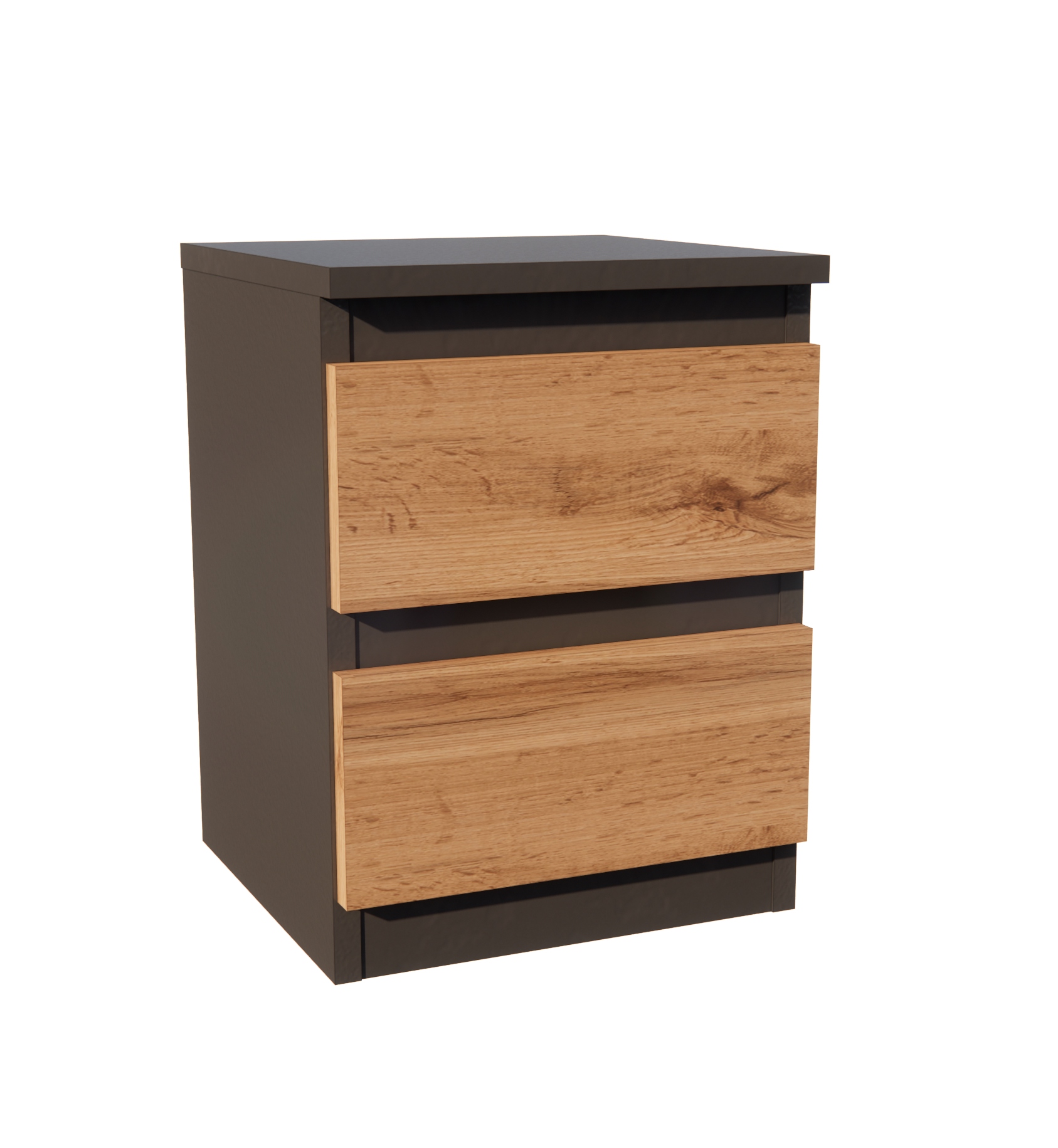Szafka nocna, 2 szuflady stolik nocny, Antracyt i dąb wotan