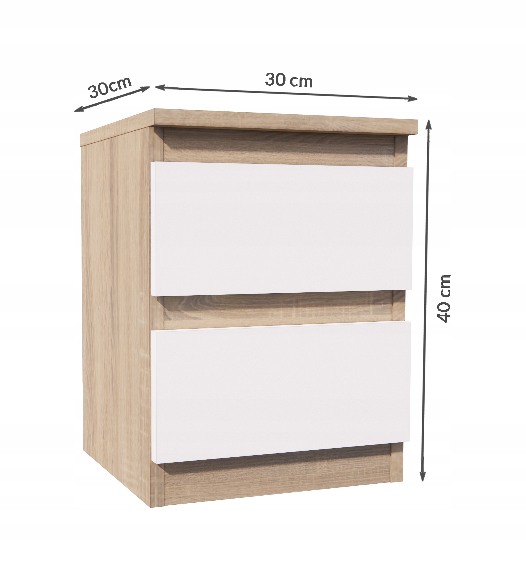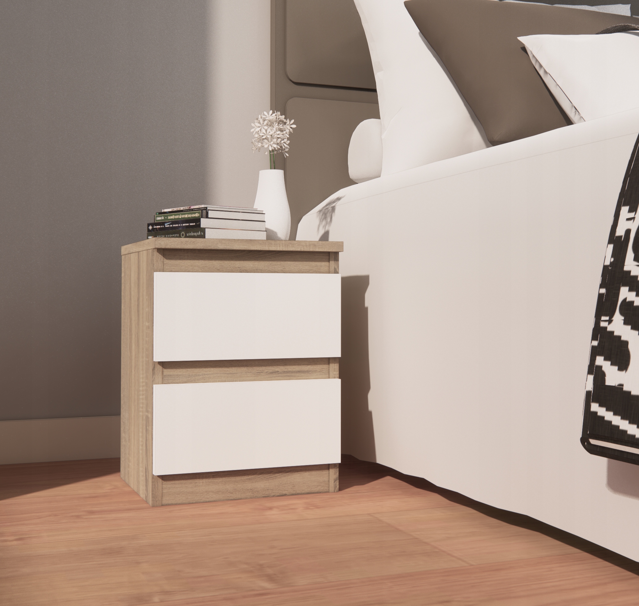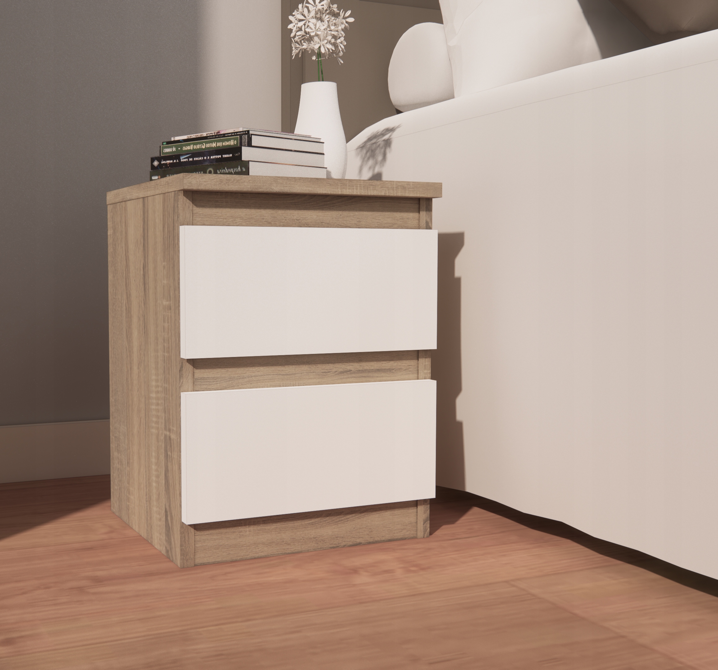 Szafka nocna, komoda, 2 szuflady stolik nocny, dąb sonoma i biały front