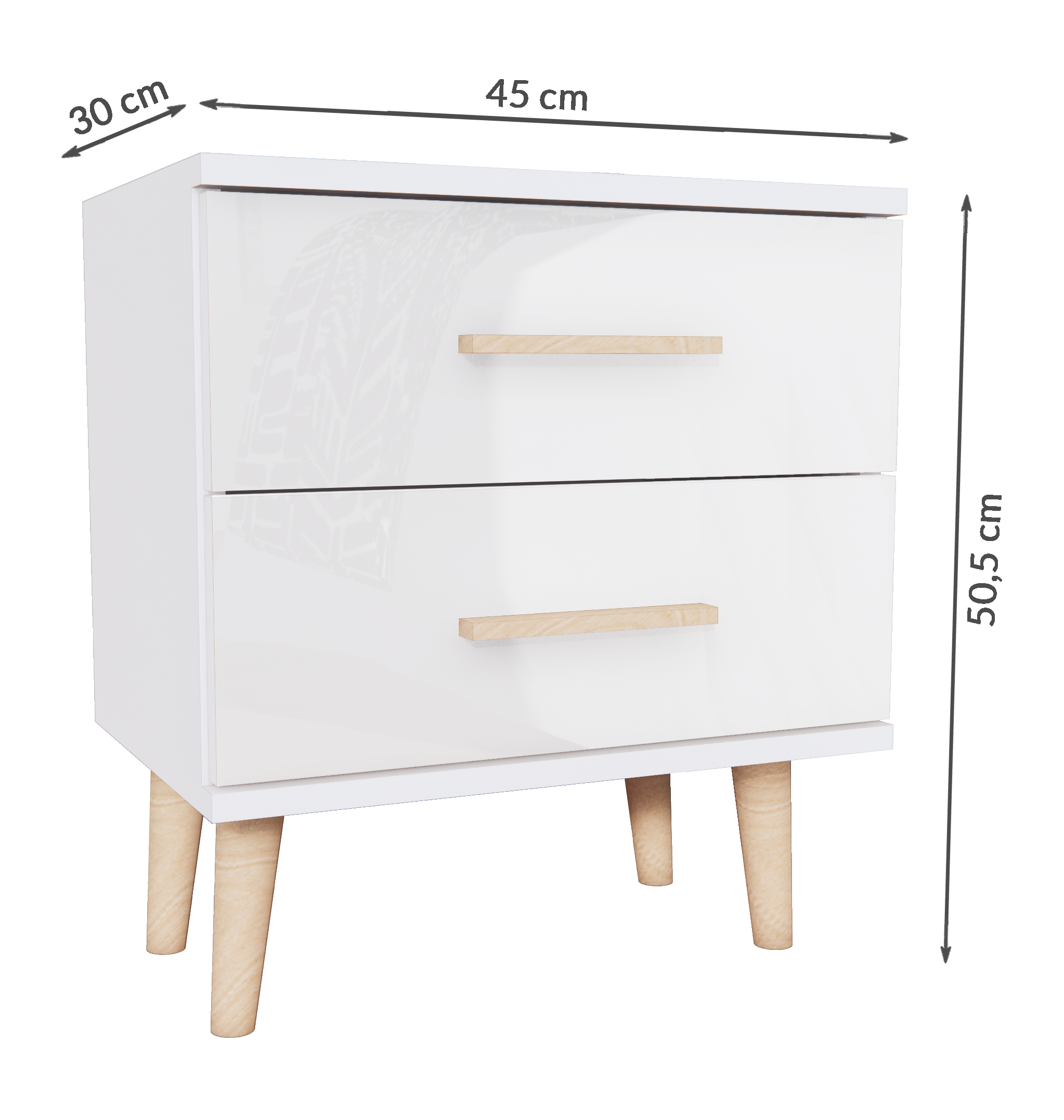 Szafka nocna SKANDYNAWIA 2, z połyskowym frontem