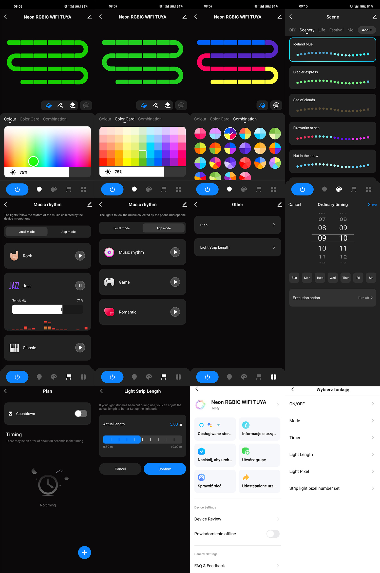 Zestaw kontrolera z taśmą LED ma najbardziej rozwinięte opcje modyfikacji ustawień i wyboru gotowych trybów.
