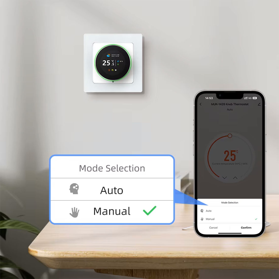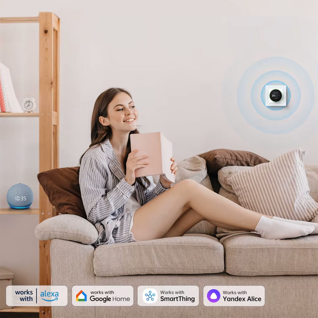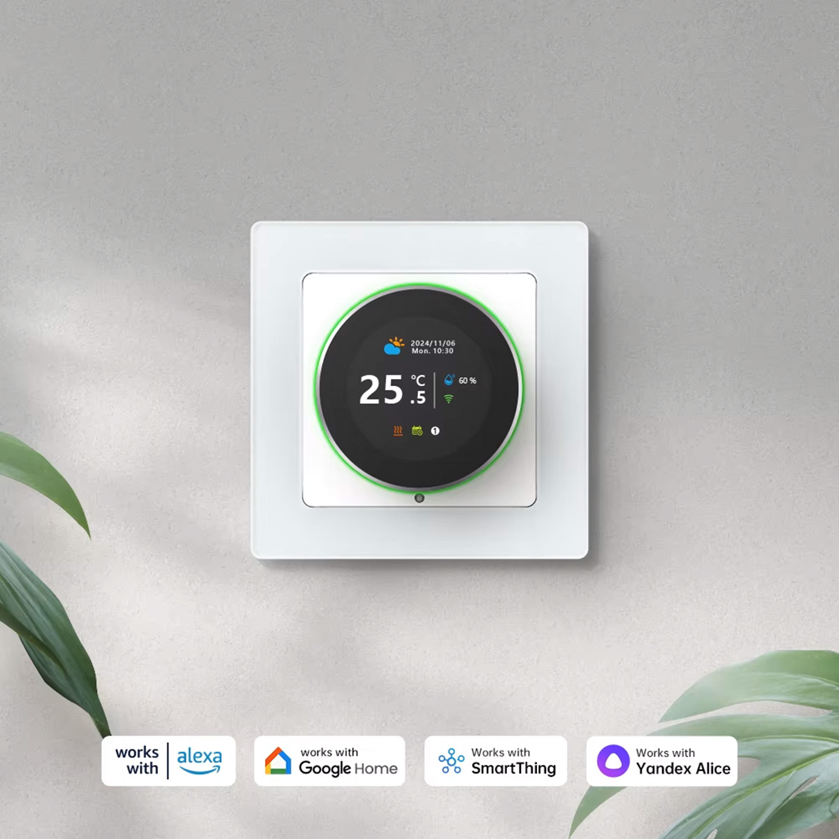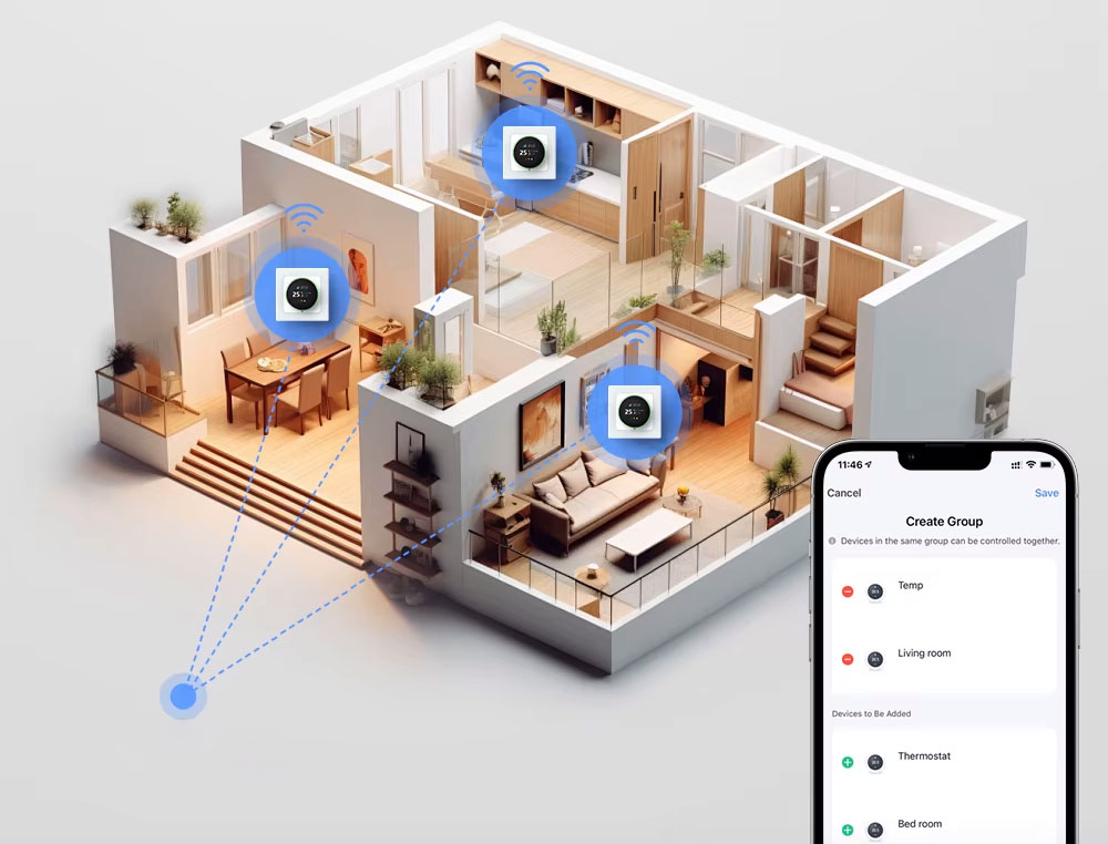 Dzięki wbudowanemu modułowi WiFi oraz kompatybilności z popularnymi platformami (TUYA, Smart Life, Amazon Alexa, Google Assistant, Yandex Alice), możesz zdalnie kontrolować temperaturę w pomieszczeniach za pomocą aplikacji na smartfonie.