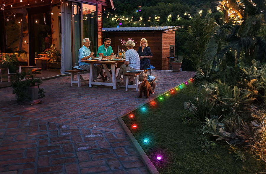 Lamki ogrodowe LED RGBIC to cyfrowe lamki RGB, w których każda dioda może być sterowana niezależnie co pozwala na uzyskanie wielu efektów świetlnych np. płynący lub wędrujący punkt. W aplikacji dostępne jest ponad 10 trybów świecenia, dzięki którym dostosujesz swoją lampke ogrodową do swojego nastroju lub ogrodu.